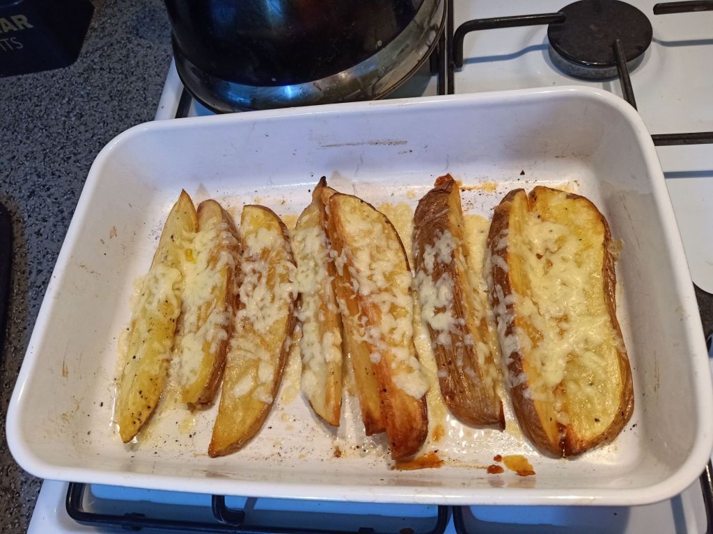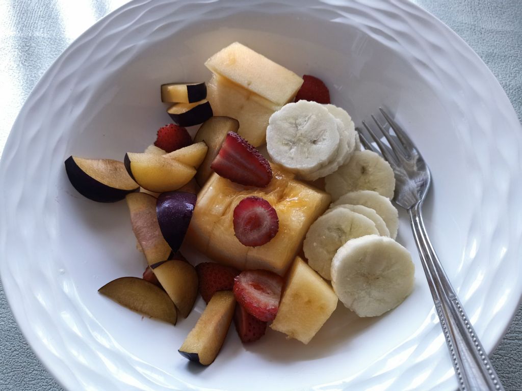 For dinner I had fruit while I waited for my potatoes with cheese to cook.