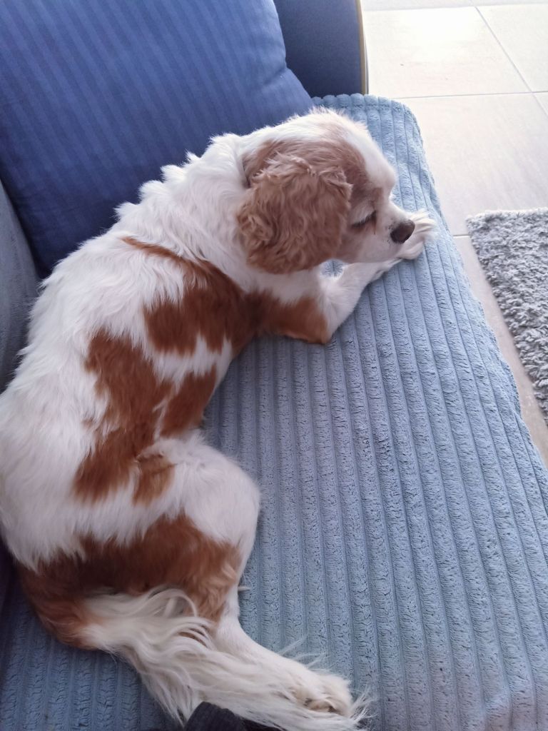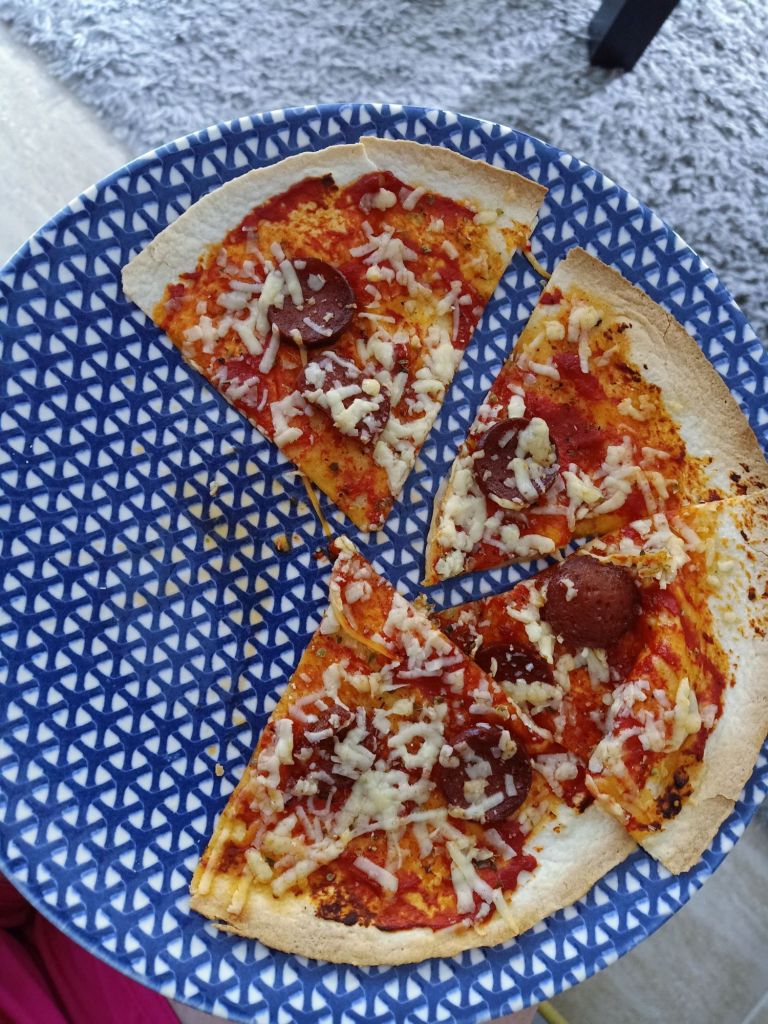 For lunch I cheered myself up with a Slimming World style pizza which I added some thinly sliced sucuk to and it was delicious. While I worked all afternoon, the pooches napped and then they came to tell me it was tea time a bit early.