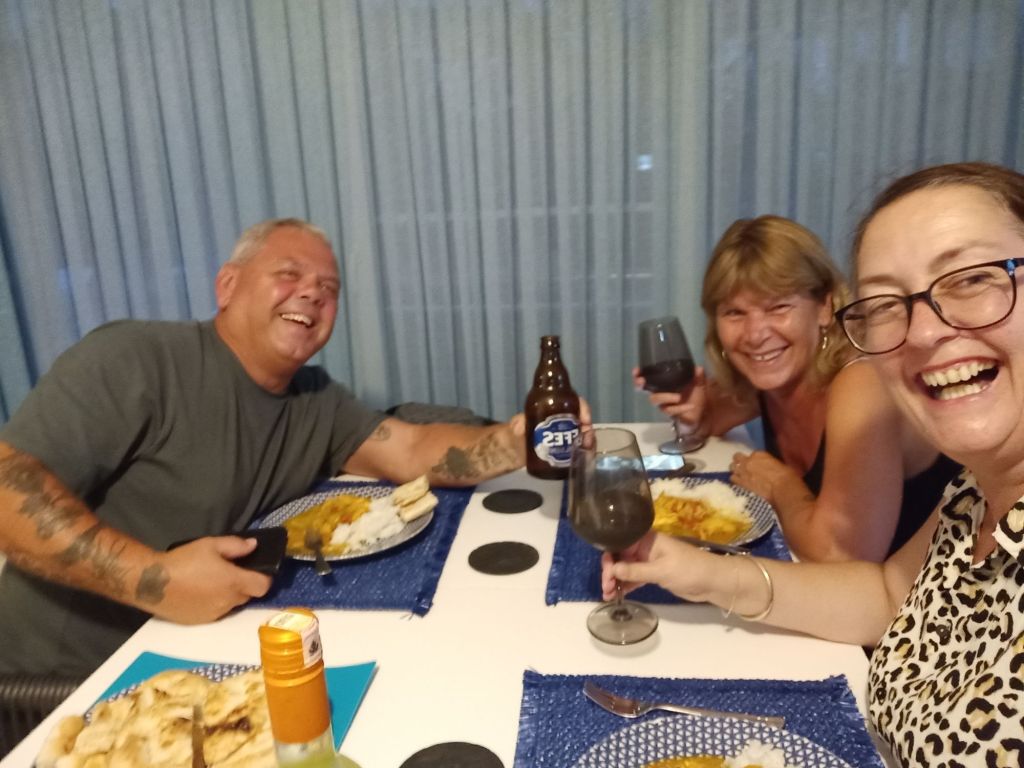 I finished work at 5pm, Ann & Stuart (the tennants) came over later and we celebrated with Prosecco for Ann & I, and beer for Stuart. We had a good laugh and the dogs really enjoyed having more visitors. We had a lovely curry and the pide bread I bought earlier, doubled up as a great naan bread substitute. We had a fab time, going on to the wine after the Prosecco and taking photos to send to Jamie as we sat at his dining room table. It was quite a late night and I had drank quite a lot, the most I’d had in 2 weeks, so I might regret it tomorrow morning when the alarm went off at 7am.
