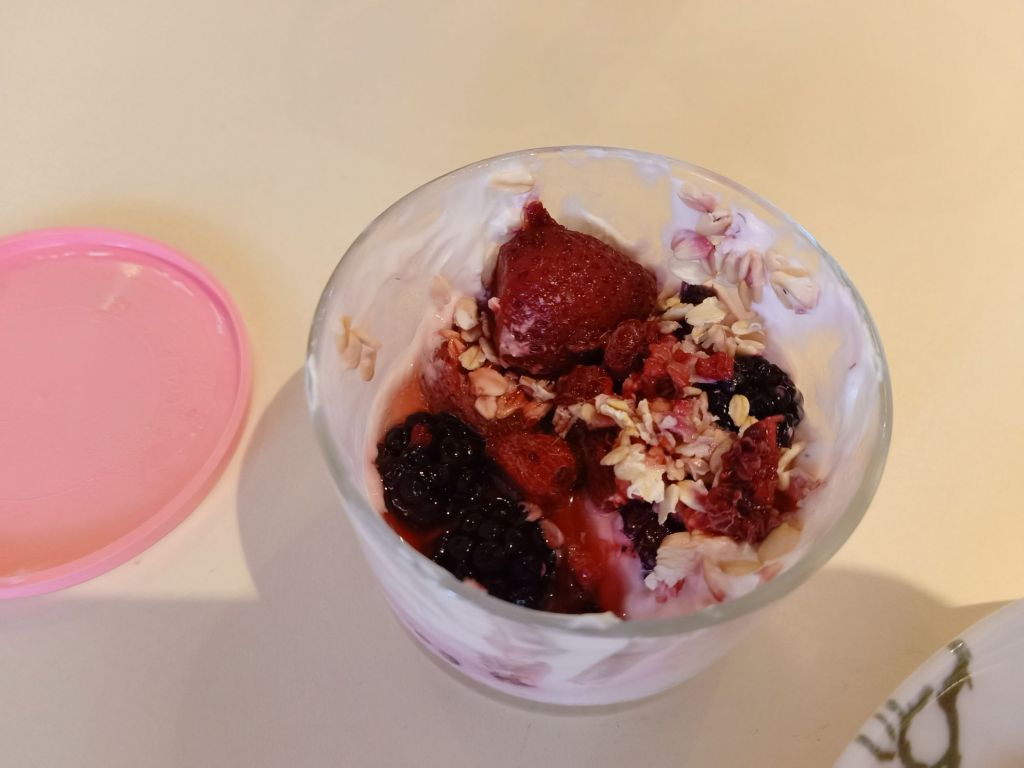I had the same breakfast as yesterday; overnight oats with quark, frozen berries, figs and plums. It was today that I found out that figs are not syn free and I was gutted as I had been eating quite a few this week without counting them. They are 2 syns each, which is quite high and today I had eaten 3 with breakfast.