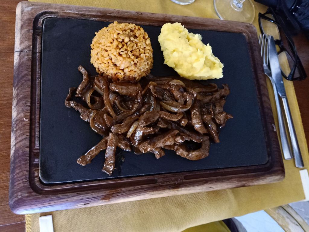 We ordered rosé wine for the women and the guys had beers, we shared a meze plate and balloon bread (lavaş) as a starter. Gayle ordered fish with chips and salad, Neil and I both had İskender kebab, Ann chose the liver and onions which came with bulgur wheat and mashed potato while Stuart went for the mixed grill. We had a lovely meal with more wine but Gayle, who hadn’t been drinking much lately got a bit tipsy. Neil and Ann had to keep reminding her to drink some water but the suggestions fell on deaf ears as she got chattier. We were still at lunch and on the second carafe of wine at gone 4pm so it was a good job I didn’t need to get back to work. It had been such a lovely treat and I was very grateful for being invited out.