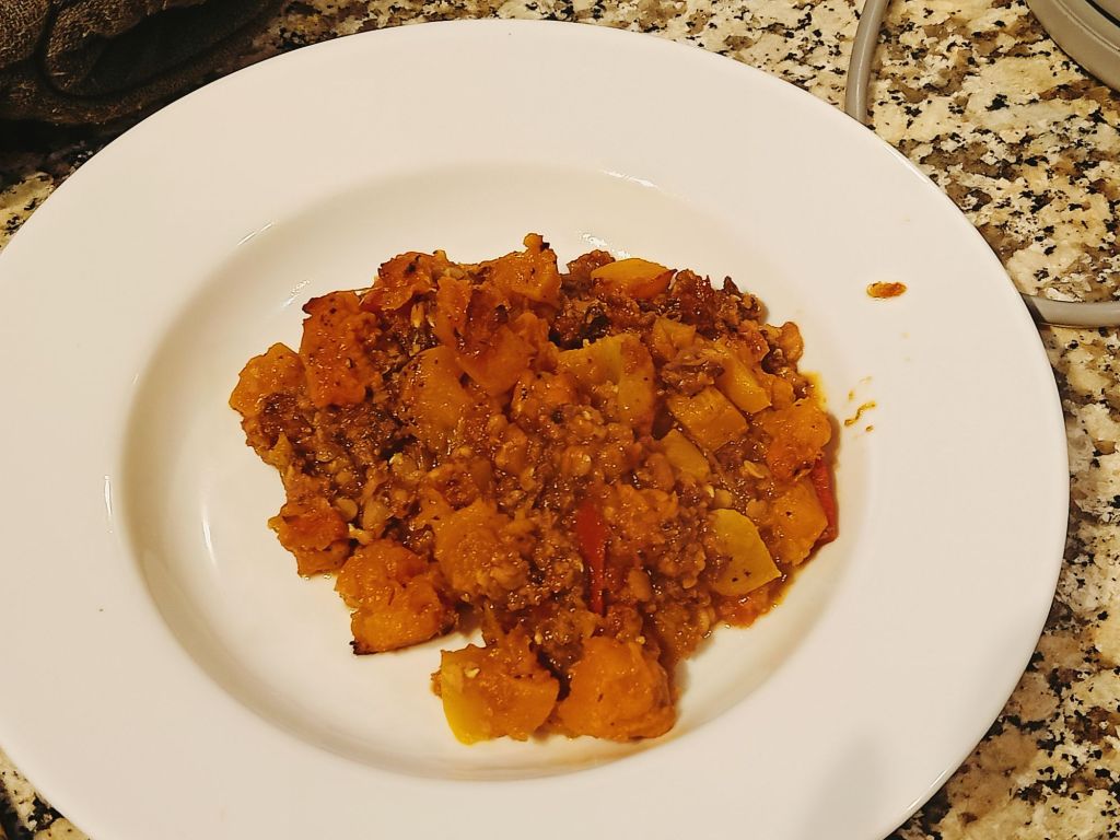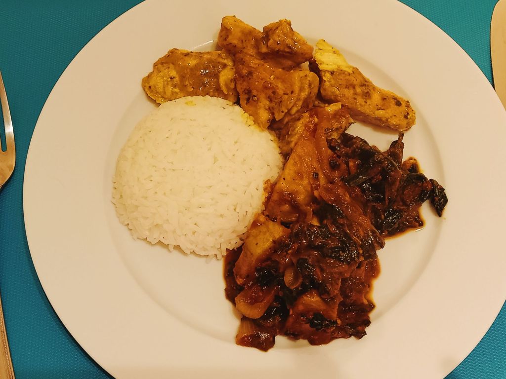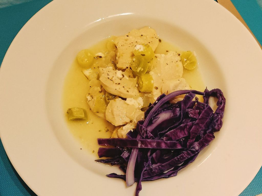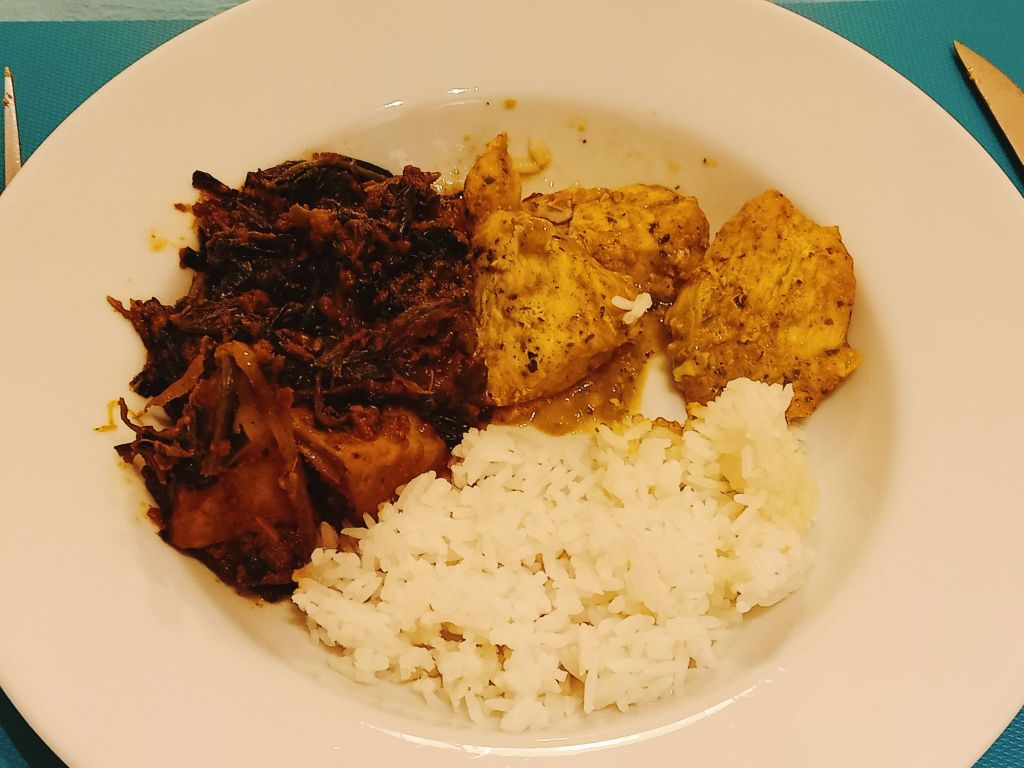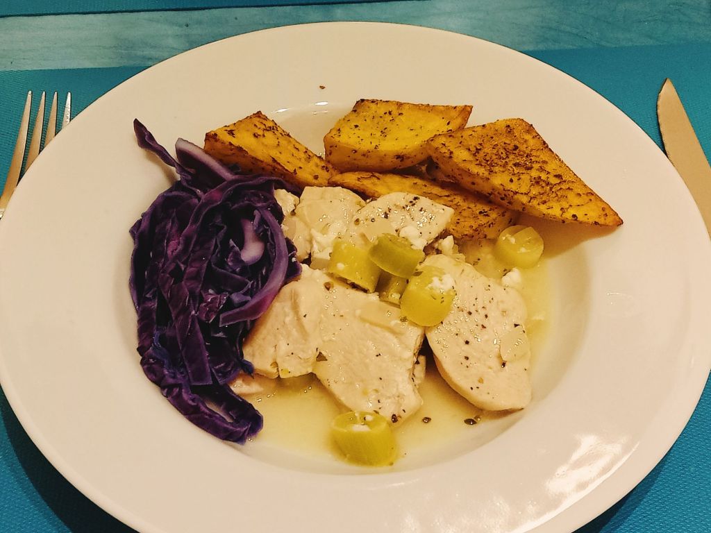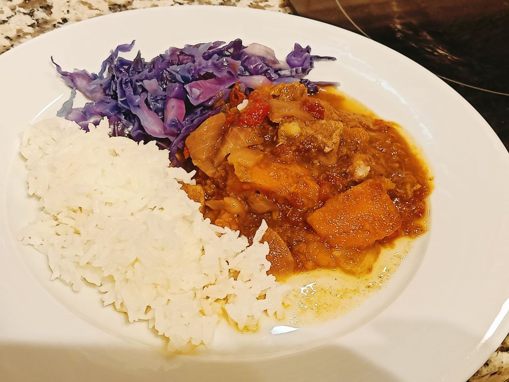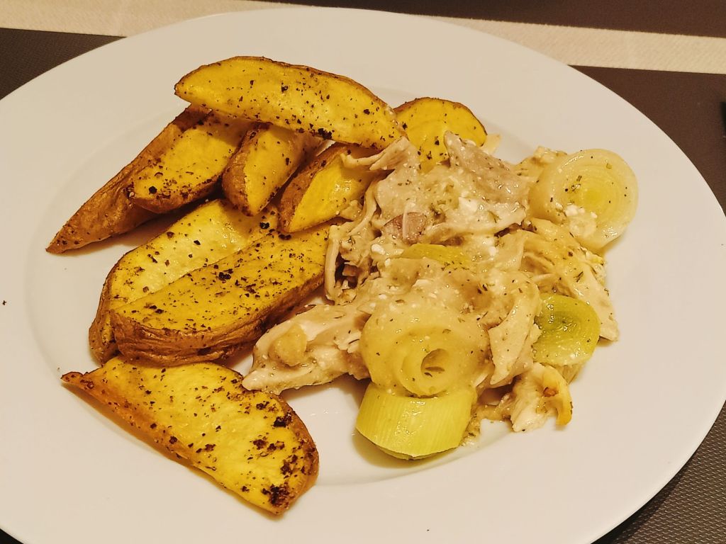 I made chicken & leek bake using quark, thyme and cheese spread which we had with roast potatoes and red cabbage. It turned out really tasty and was syn free using the Healthy A for the cheese. Captain Caveman helped with the potatoes and was having a whiskey with his dinner so I had one too.