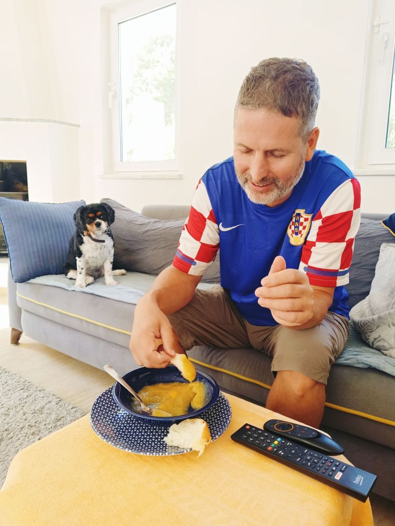 Captain Caveman came over to Jamie’s to have lunch with me and after eating a mini Magnum each we had leek & potato soup with a cheese sandwich – one of my favourite lunches. I’d already eaten over the syn allowance for the week but in the afternoon we had a Dido chocolate bar each too. My friend, Debbie, had got me in to them as they are a little bit like a chunky KitKat but with different flavours and usually much cheaper – often on offer in BIM. Not content with 2 treats in the day, we also had some crisps then Captain Caveman and the 2 dogs had a good afternoon snooze in front of the TV, all 3 of them snoring away.