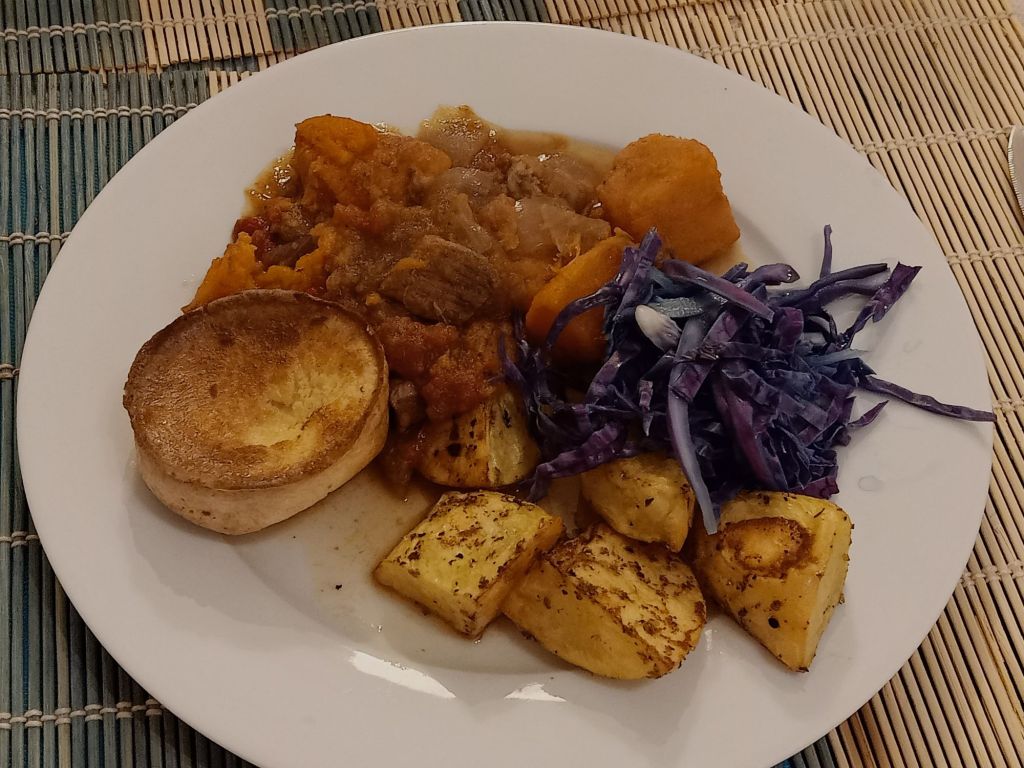 For dinner we warmed up a mystery curry from the freezer which turned out to be the last of the chicken one that I had put beans instead of chickpeas in – it still went down well with rice and roast potatoes.