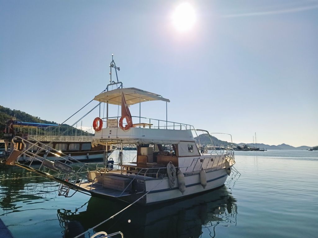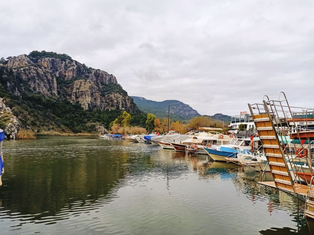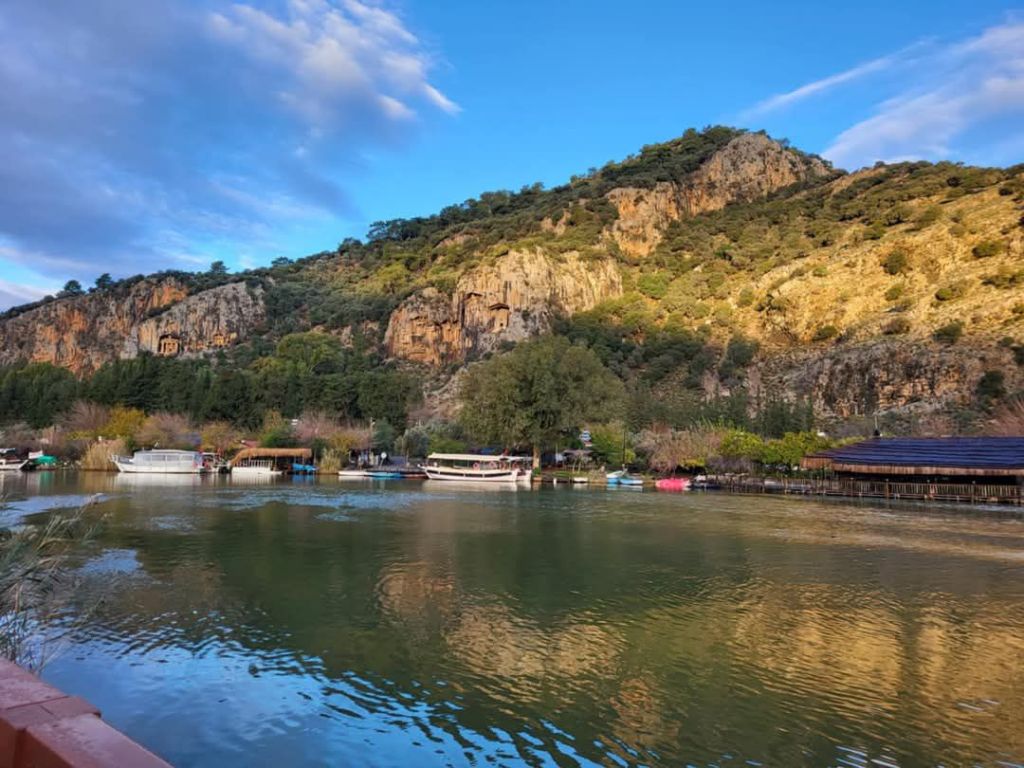 We were due back to the boat by 2.30pm on Captain Caveman’s last full day in Turkey. It was so beautiful that we kept stopping to take photos of the scenic lake as we went back to the boat and it was so lovely to have spent precious time together. It was also amazing that we had spent less than £35 for the whole outing so far!! Back on the boat, Waterlilly had prepared a fruit plate with nuts and more tea which was lovely and the boat was red hot from still having the heaters on. We had brought swimmers as we were told we would be calling at the Sultaniye Mud Baths but we went straight back to Dalyan. I was happy with this as I needed to get back for work.