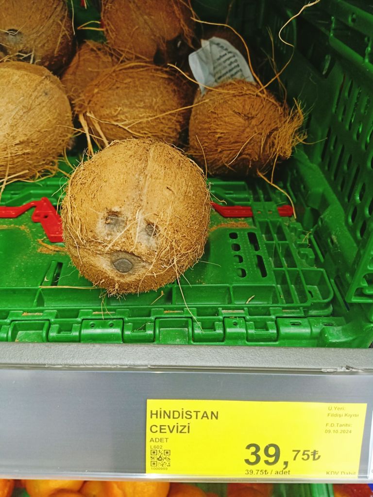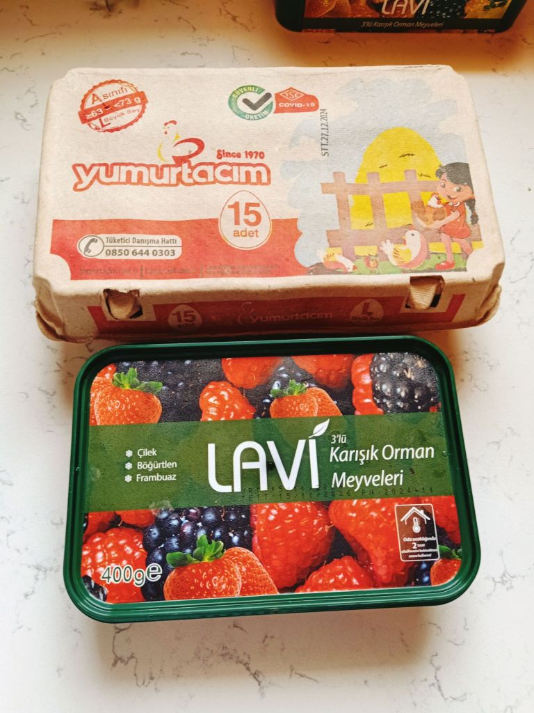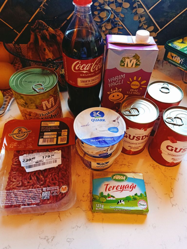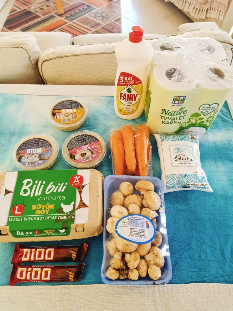 We then went to the fruit and veg market while the others went elsewhere. Here’s what we bought with the prices in lira;