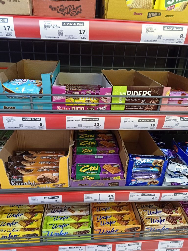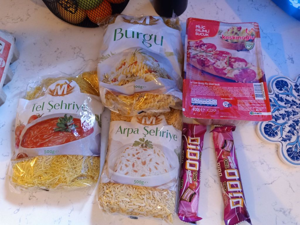 We called at the shops, where Captain Caveman and the dogs waited outside. Here’s what we bought and the prices in lira;