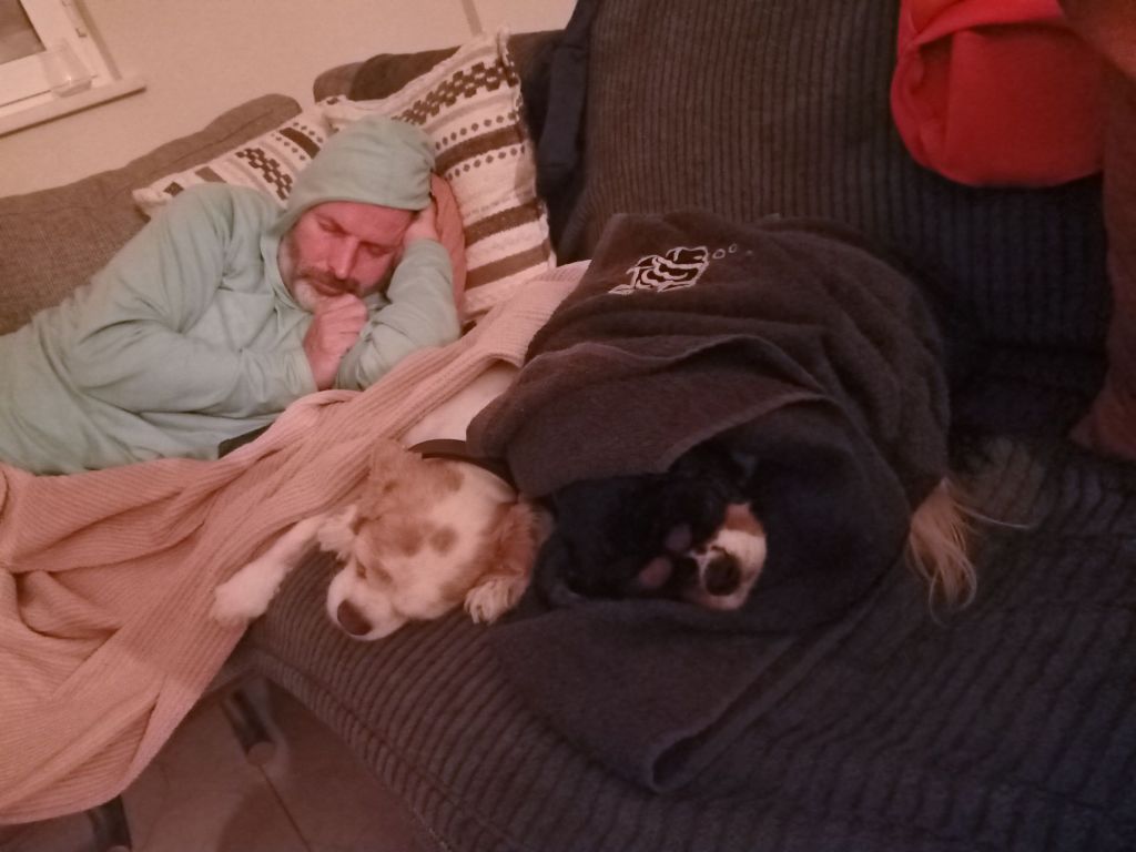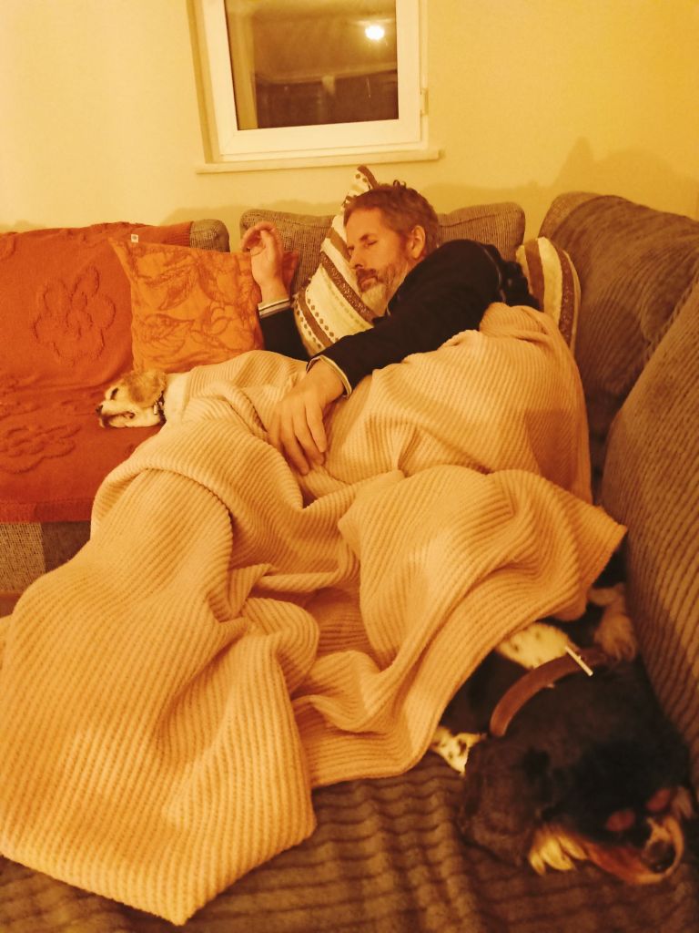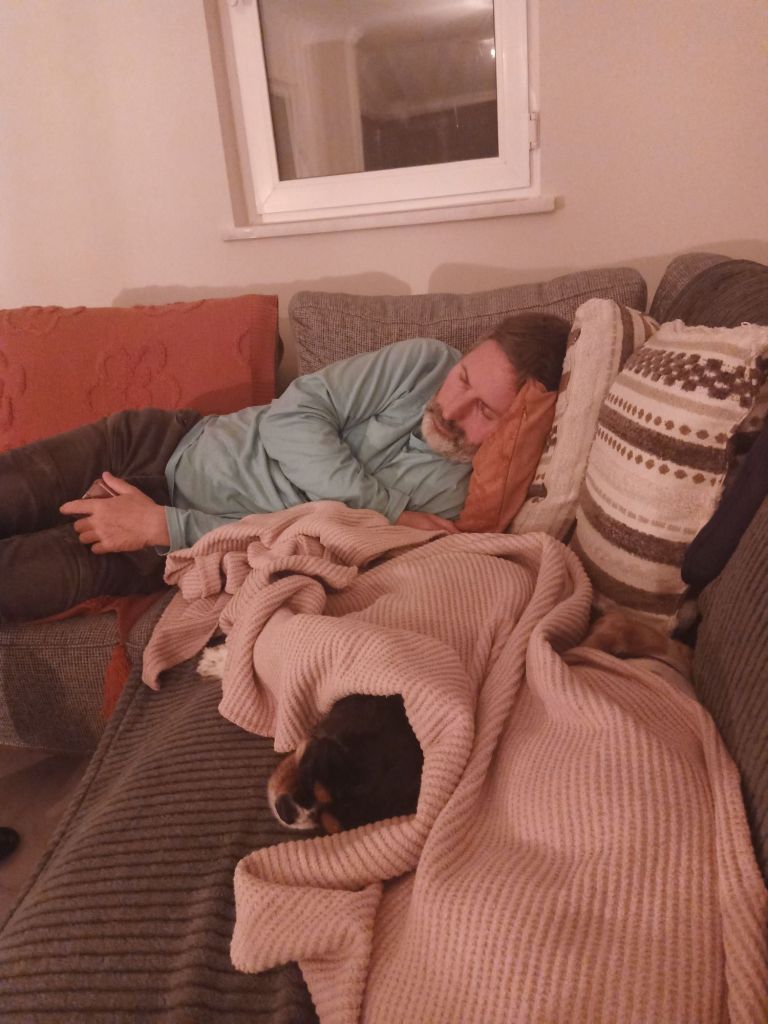Back home we had the obligatory soup, with bread and a Dido chocolate bar each. Edna had decided she liked the sunny sofa arm and I did a quick video for Jamie and I finished work early, with it being a Friday. Captain Caveman and I shared making fajitas for dinner.
