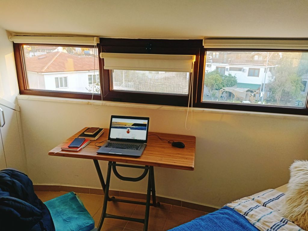Around the time I was waiting for my friend to pick me up, the power went off and so I had no internet. We drove to hers and the little dog, who I affectionately renamed Lady C, seemed a bit sad that the big suitcases were out. The lovely neighbours popped round and I met them and a few of the regular cat visitors who I would also be feeding and keeping an eye on. While I was saying bye to my friends, Captain Caveman was in a Premier Inn in Sheffield, preparing for an interview. He’d decided to check in there for a couple of nights so that he had no distractions and had somewhere nice and comfy to stay. Meanwhile, Lady C was out on her dog bed, having a snoozy sunbathe while I caught up with some emails. I made the kitchen island in to my temporary desk. Unfortunately, I got a message to say that the flight was delayed and then later that it was cancelled due to a medical emergency on the inbound fight. Luckily, my friends were offered a room in a hotel for the night so Lady C was stuck with me.