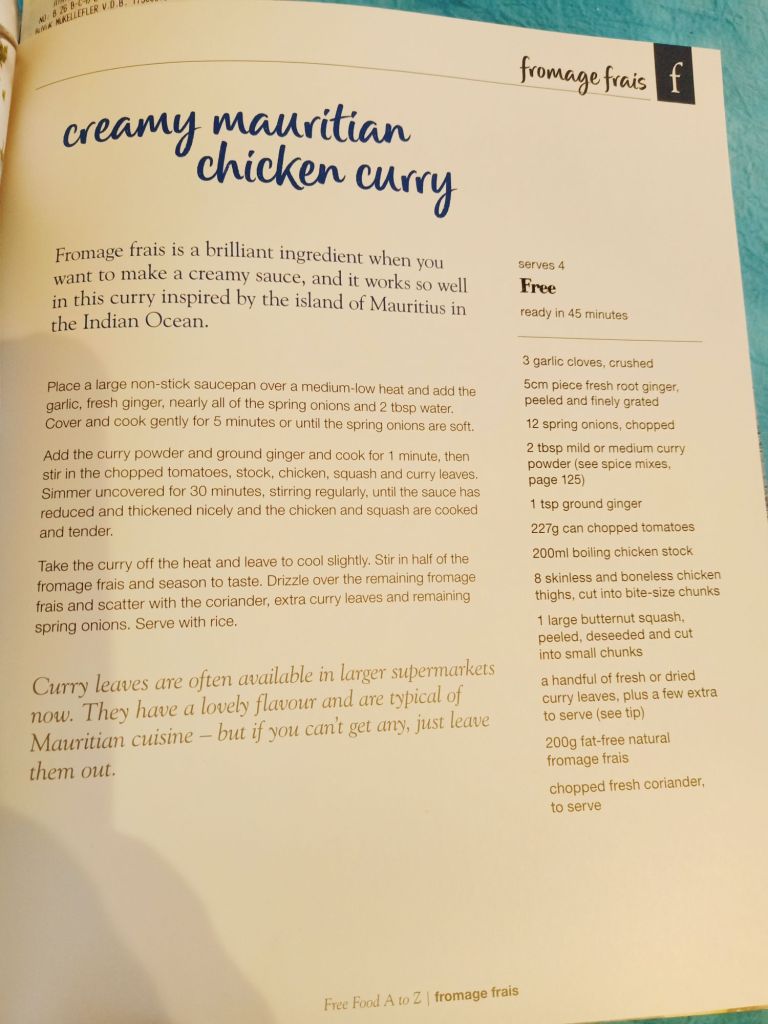When I finally got on the scales at Fat Club, I was surprised to find I had lost 0.3kg (0.7lb) which meant I was now 0.5kg under my target. I was very pleased and only having consumed 167 syns this week had really helped. Carol loaned me a Slimming World book which was about how I managed to maintain this healthier weight from now on and I took it home to digest the information. What I had not realised is that once you hit your target weight, you can have extra Healthy A & B options as well as a few more syns, although you are meant to use them for healthier fats rather than crisps. If I’d known that at the beginning, it might have spurred me on a bit faster!!