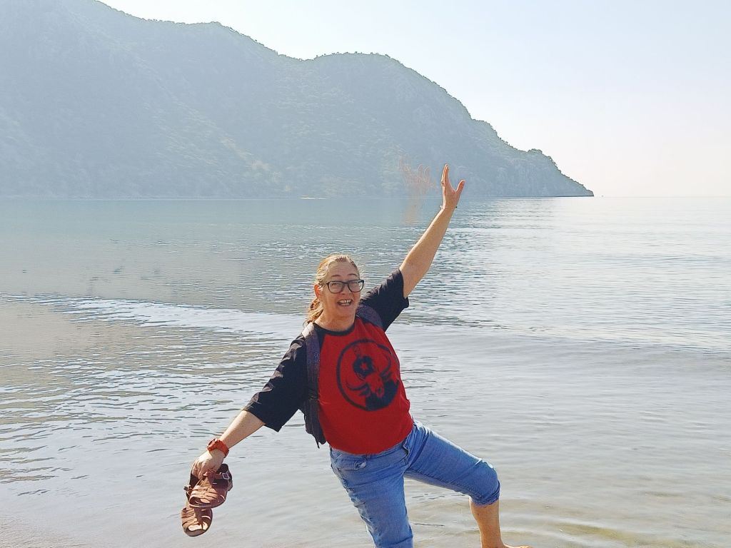 I had an incredible day on Sunday 2nd February; Debbie and I were back to safety in numbers on a Sunday get together . Sezgin had invited Debbie, Mike and I for a trip to the beach. I had some work to do in the afternoon so it was perfect timing that I would go to the beach and be back before 5pm, which is 2pm UK time. I got a lift there with Debbie and Mike, who were still laughing at last Sunday’s debacle, so I was determined not to have another incident this week. We met Sezgin & Nur at Iztuzu Beach café where they introduced us to their son, Zen, for the first time. We all took a walk along the beach, it was beautiful and sunny – warm enough for a paddle too. It felt so nice to have the sand and sea between my toes and the breeze in my face.