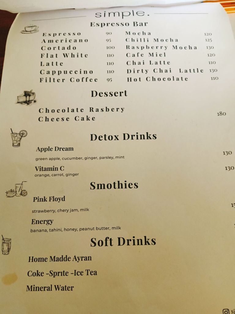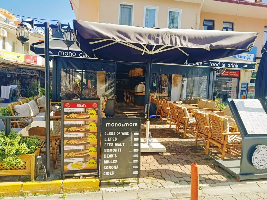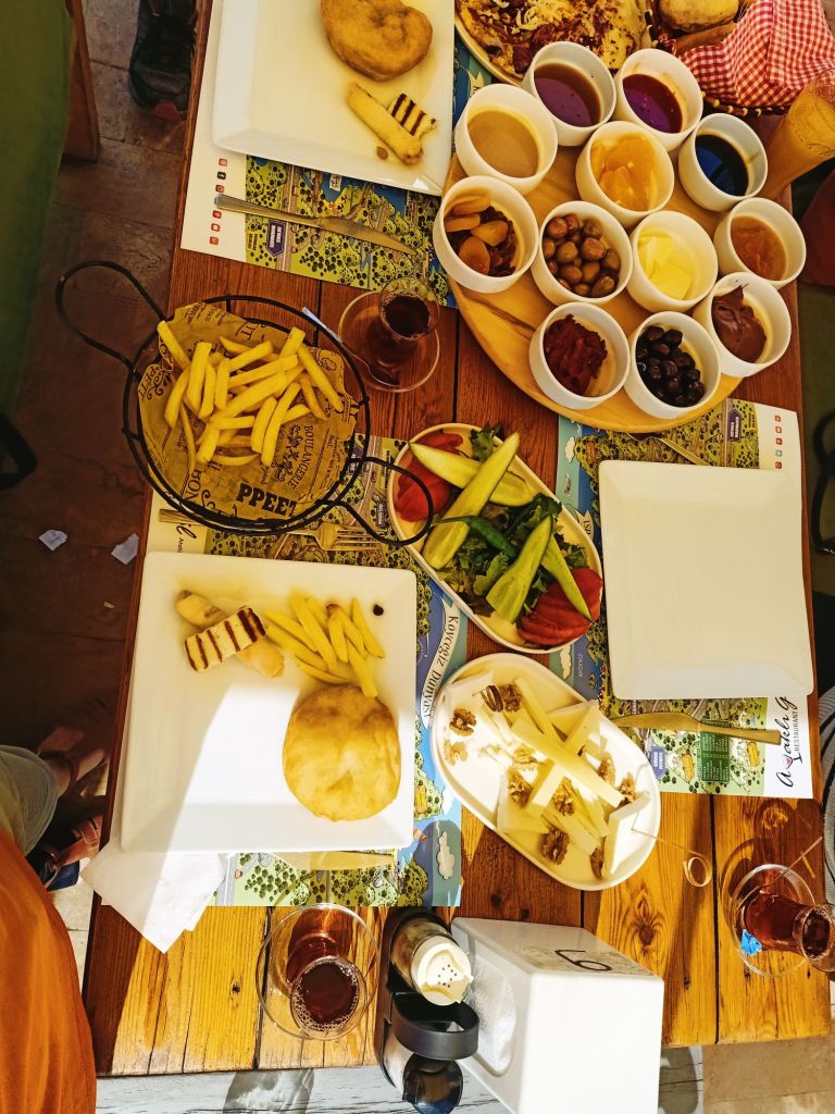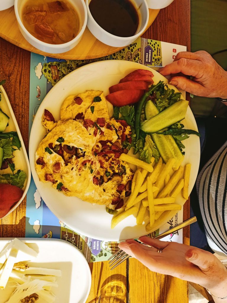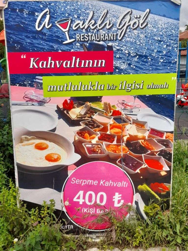 Back at the car, I suggested we go to get a hot drink somewhere and we were thinking of MacDonald’s but it wasn’t open yet – we’d been so efficient. Dale suggested a place he’d been before which was a bit nicer and I was happy to try it. Big Chefs seemed like an appropriate place to go for a bit of a treat to celebrate the successful renewal. Dale ordered a protein shake while I ordered sage tea and a cheese and sucuk toastie for my breakfast. The views were great and the place very clean and relaxing. Here’s the prices, in lira, for our fancy breakfast;