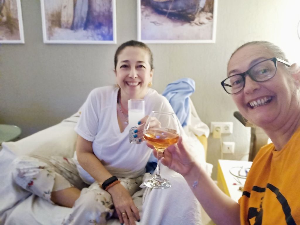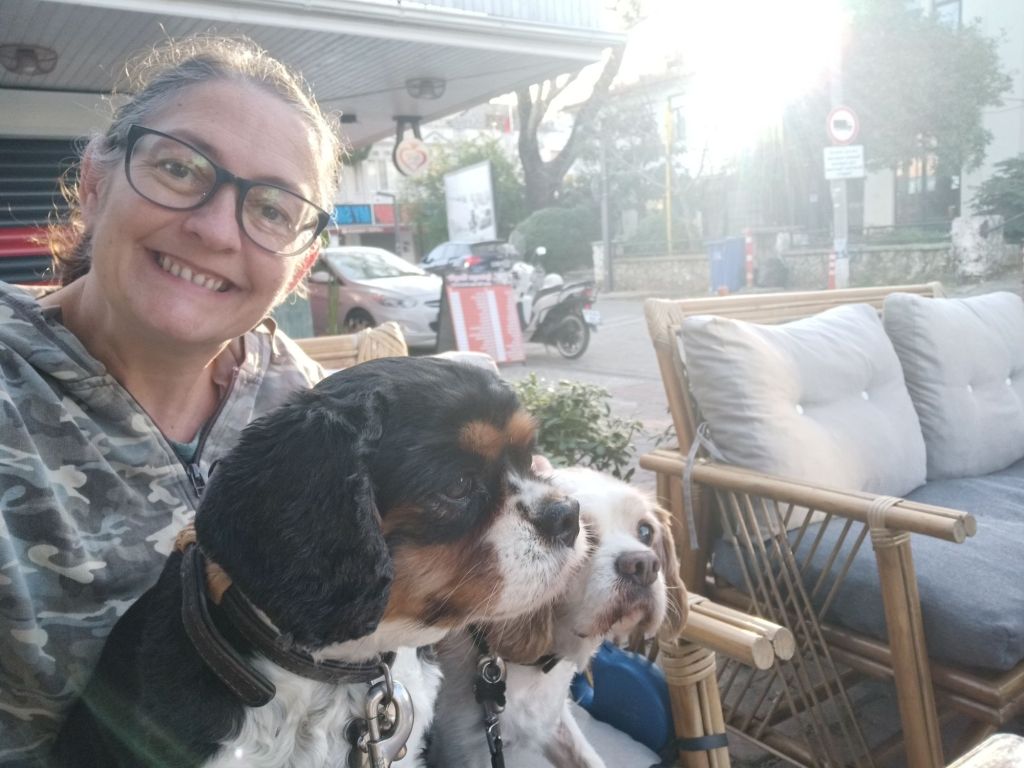 Fat Club was at 2pm where I was delighted to find that I had only put on 0.1kg (0.2lb) so had pretty much stayed the same and remained under target! By 4.15pm, I was on my way, with Norman and Edna, to celebrate a few sales of my ‘You Can’t Shit Yourself on a Bicycle’ book. While drinking a red wine at Mono & More in the sun, one of my great friends sent me a selfie of her with my book and I was so excited. I was even more thrilled to see that she posted on Facebook to say how much she was looking forward to reading it and how proud she was of me. I was emotional. Edna was so excited too but that was because her and Norman had found some scraps of food on the floor. We bumped in to some of Jamie’s friends so Edna was pleased to be out with the girls and hoped it meant they would share food with her. I didn’t stay out as it was getting cooler so I paid for my wine, it had gone up to 145 lira (£3.06) now but was still a good price for the measure. Back at Jamie’s after feeding the dogs, I had a chicken curry with naan bread and rice, followed by strawberries. I worked a little more on letting people know about my book and travel business and then started working on chapter titles for book 2.