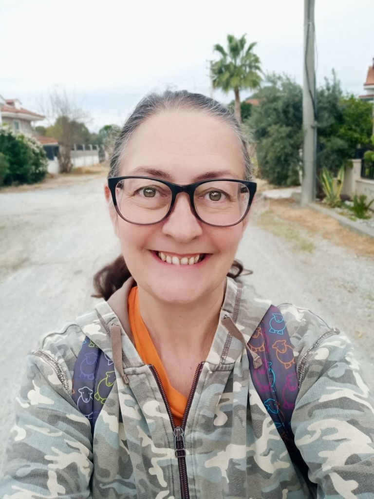 By 7am on Wednesday 19th March, I was having snuggles on the sofa with Edna after both dogs had eaten breakfast and been outside. The weather had turned and more bad weather warnings came. My measurements showed no change to my bust or hips but I’d lost 2cm from my waist – I was doing really well with being under target on actual centimetres. For some reason, I had managed to be so busy with other stuff that I forgot to do my food diary. I checked my Amazon account as I had been actively selling ‘You Can’t Shit Yourself on a Bicycle’ for the last 10 days and had sold more than 1 per day on average! I was continuing to get 5 Star reviews too, which I was pleased about. This was good news as I was only using my own Facebook page to promote it, so far. I realised that I had not even added any information to the author section of my book page on Amazon, so I did that. I did my Turkish homework last minute and was just about to leave to go to class when the post man came with a special delivery for me. My friend and colleague, Dagne, had sent me a really lovely gift of a purse, some homemade jewellery with shells she had collected from the beach and a lovely postcard. She had already told me that she was desperate to buy my book and I was still working on getting it available in Europe as a paperback – it was already available for Kindle/eBook everywhere. On the way to Turkish class the wind was starting to get up and it felt very cold again. Our Turkish class was good and I wished I had more time to actually practice some of what I learned. At 1pm I rushed back to attend a training Webinar about package holidays. I then had a call with Dagne to thank her for my rather lovely gift, before shovelling down a salad and running off to Fat Club. There, I was obviously disappointed to find that the 300 syns I had consumed this week, had resulted in me putting on a whopping 1.6kg (3.5lb). Because my measurements were so promising, I wasn’t overly bothered about the huge weight gain and was confident I could get it back down to target again.