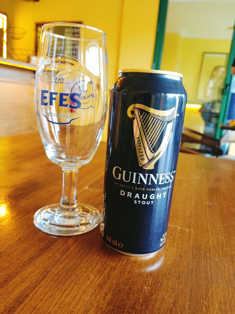 I walked quickly back home, found Captain Caveman’s tax card, walked the dogs back to Jamie’s and picked up my passport. As I turned round to leave again, Norman was having what I thought was a funny turn and his back leg wouldn’t work. I got him up off the floor and he looked fine but he couldn’t stand and Edna was licking his eyes. I got the lid off the treat tin and, miraculously, Norman’s legs were back to normal. I waited a few minutes, snaffled down a chicken wrap, then put him on the sofa and left. I almost ran back to the bank and was in there way after 5pm. I was hot and red from rushing so the young girl brought me water and offered me her last Toffifee, which I politely declined. They printed everything out, and updated my Turkish phone number. Aytaç then phoned to say he wouldn’t have my insurance documents ready as it was a Saturday and I was fine with that as it was unlikely I would need them until Monday. I was meant to be meeting friends for a drink at 5pm and had already let them know I was going to be late. I had not had an OTP code on my phone so I had assumed I wouldn’t be getting an appointment date today, but then I got a call to tell me my appointment was for first thing on Monday morning. I said I only had copies of the new insurance policies and we could take them as my originals would arrive too late. I arrived at Ren Garden to meet friends after 5.30pm, a hot sweaty mess but in need of a cold beverage. I love Ren Garden, which is the bar at the Grandma’s Garden hotel. The mother and son who run the place are really nice and always friendly. I ordered a rosé wine with soda and the others had beers. We had a good catch up and a bit of a laugh before Debbie and Mike went home. I tried vegetarian çiğ köfte which The owner and her friend were eating, it was very nice. The remaining three of us decided it would be a good idea to head back to Sezgin and Nur’s house for a bit of tongue and cheese!!! We called at Yaman Büfe for drinks along the way and I took a photo of the rakı which Sezgin recommended for when Captain Caveman arrived. I went to check on the dogs and let them out for a wee. Norman was his usual sprightly self so I was pleased he was ok. When I arrived, Nur was cooking up a bit of tongue for us to eat with Tulum cheese. I had more wine, they had raki and the food was great. We listened to music and had great fun but Nur got upset when we called Captain Caveman and she saw he was in the Broady with 2 gorgeous women! She was jealous on my behalf which was funny and I had to explain he was with Caz and Lucy plus a whole group of men and women who were celebrating Leroy’s birthday. I got home late and wondered if I would get up early enough for a market visit tomorrow.