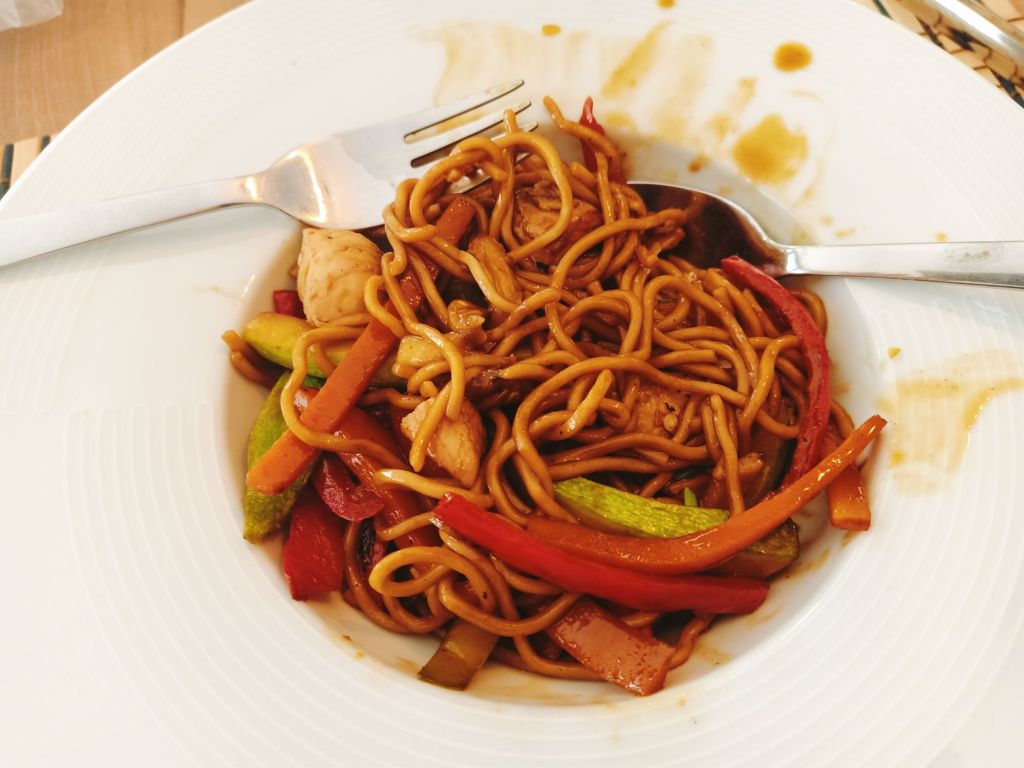After finishing work, Edna and I were excited that Nanny Kay was popping over for a natter and some dinner. Nanny Kay decided to drive over as the storm and blustery weather had started – cycling would not have been sensible. We had a good catch up with cups of tea and it’s always lovely to talk to Nanny Kay. She’d been away and catching up with friends so there was lots to get through while Edna got some fuss. We decided to order a takeaway for delivery from Simple. Onur, is the owner and chef of this rather lovely restaurant, located near Migros and Mimi’s, in the corner of the square. I really enjoy Onur’s food and he does some fantastic noodle dishes. We decided to order one each of the beef and the chicken noodles, I asked for it without chillies (as I’m allergic) and it came delivered to the door very swiftly. I thought it was well presented in the boxes and it cost a total of 680 lira (£14.26) for both of us. We both thought it was absolutely delicious and I would definitely recommend it, if you’re in Dalyan.