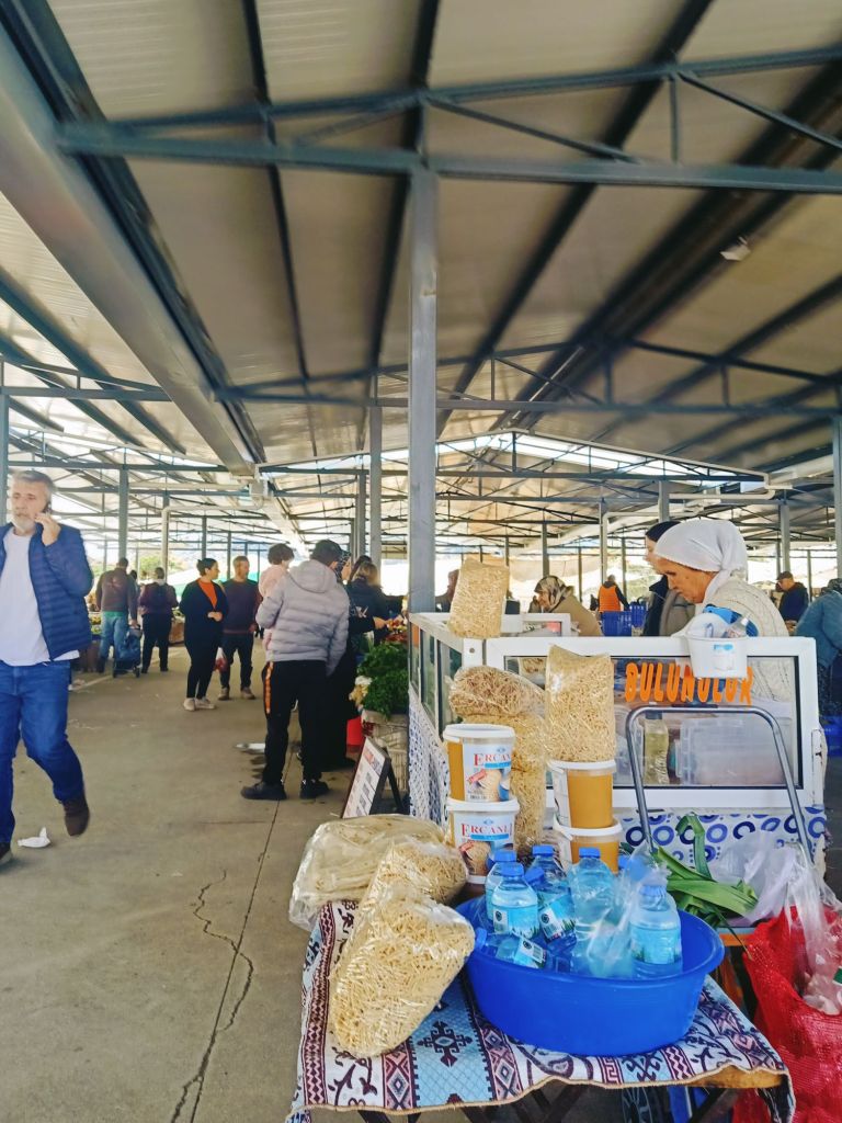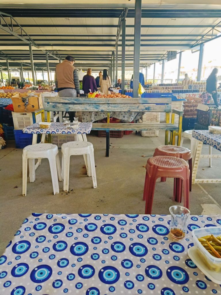 The first job of the day on Saturday 8th March was to make a shopping list while drinking a cup of tea. I decided I would go to the bank before the market so that I had enough cash to spend and then I could get some nice treats for the week. I also decided I would treat myself to a spinach gözleme (pancake) from the market for my breakfast. Here is what I bought on my first visit, prices in lira;