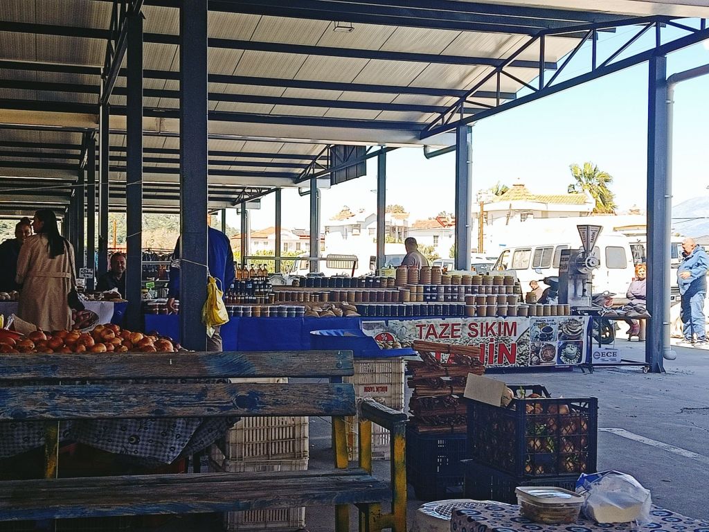 I had planned to meet a friend for an outing to Dalaman on Saturday 22nd March. The plan was to meet up after the market and go off on a bit of an adventure, but I had to cancel. I had Resort Experts enquiries to deal with and I didn’t want to miss out on potential bookings. I had Yorkshire tea and wholemeal toast for breakfast then cracked on with work. In the afternoon I went to the market where I also treated myself to lunch. Here’s what I bought with the prices in lira;