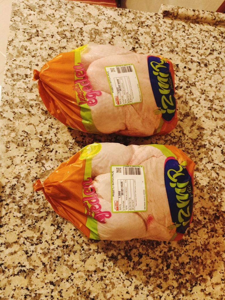 Şok Supermarket 2 x 1.8kg chickens 309.52 lira (£6.32)
