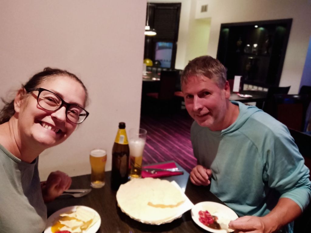 We opened a bottle of the champagne and had a toast to all being in Sheffield, before going out for the evening.