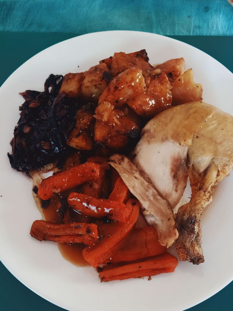 I didn’t bother with breakfast on Monday 23rd June as I was too busy getting on with all the jobs I needed to do. I also didn’t leave the house for the 2nd day since Captain Caveman left as I needed to get back on track. Not only with healthier eating and less spending but also working more on both Resort Experts and getting my book sold and the next ones finished. There just weren’t enough hours in the day but I was determined to build my customer base in readiness for the next books that were due to follow. I finally ate lunch which was more like a breakfast and really enjoyed it with a cup of Yorkshire tea. I worked on several quotes for friends and also had a call with my colleagues in Majorca and a Italy to share some ideas. At 3pm I was on a Q & A call with Claire Clarke who I’m working on a travel planner with. At 4pm I attended the last session of a Visibility session with Lisa Johnson who I was also learning lots from. I finished work at 5pm, tired, and warmed up a meal I’d taken out of the freezer; a chicken dinner with potatoes, carrots and red cabbage which I put a bit of gravy on. By 8.30pm I had lit my new Maizie Moo citronella candle and was ready for bed. I waited for Captain Caveman to call me and he told me all about his day. He was glad to be back in London and had put himself down for night shifts at the weekend because they were so short staffed.