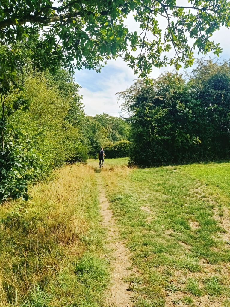When we got to the top of Ridgeway Road, I was really flagging so we decided we would walk down to the Queen’s Head for a refreshment and miss out the Phoenix. While there, I called my Mom to check if they were in the Phoenix but they had not got that far either and were now back at home. Captain Caveman had the bright idea that we would cut across the fields and meet them in the Alma pub. He reckoned it would take 40 minutes and I suspected it would be twice that, at my pace. We set off walking and all was quite pleasant, we picked blackberries and raspberries and ate them as we went along.