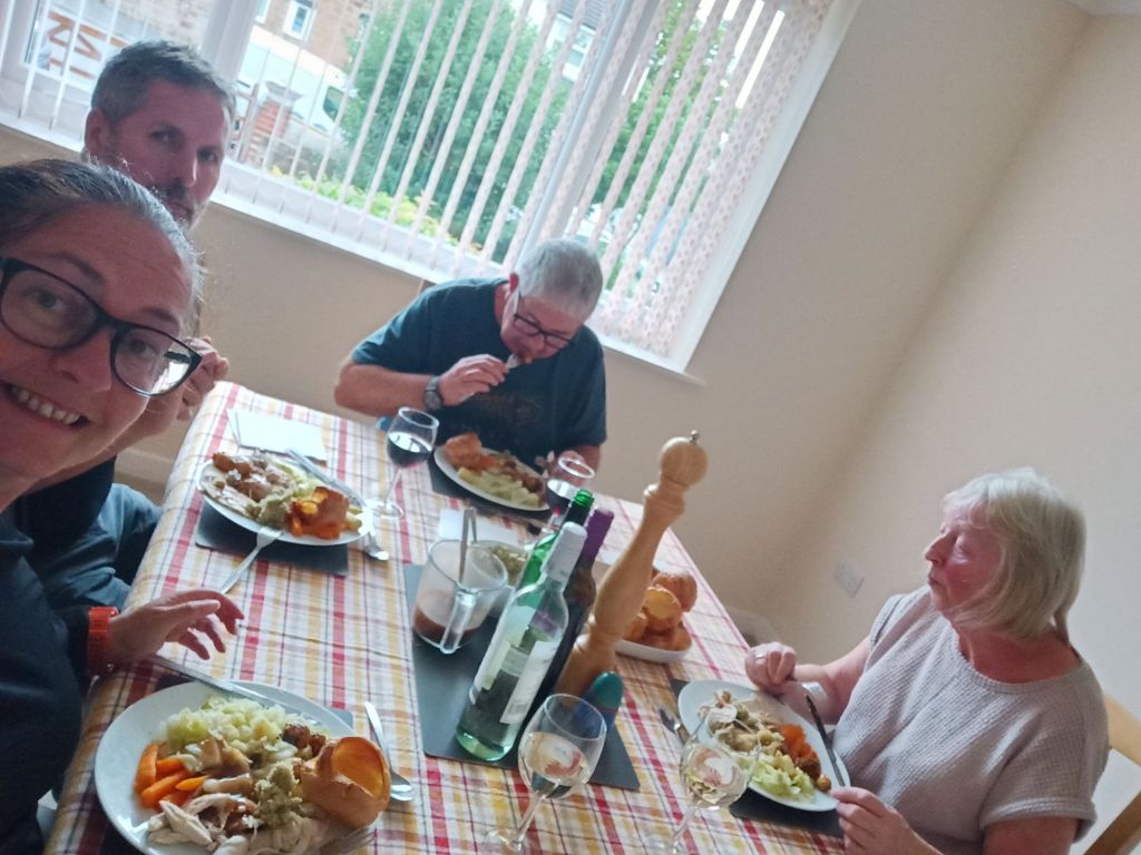 While at the pub I got a message from Jamie, back in Dalyan, to tell me that our pool was a funny colour and half empty. He wondered if we knew about it, as it’s unusual for this to happen during the holiday season. We didn’t know so Captain Caveman and I were a bit concerned that the pool and garden company were not doing their job properly (again). My mom noticed in a Facebook group that there was a bloke nearby giving away a dining room table so Captain Caveman, my Dad and I decided to say we would have it and we arranged to call and collect it. We had a couple of pints and then Ma cheered me up no end! She had decided to make us all a Sunday dinner, the second one in a row. Captain Caveman was so pleased that he even raced to the shop to buy stuffing when Ma said she didn’t have any. He also bought more wine and chopped up the whole cabbage – he knew I wasn’t eating enough veggies. The Sunday dinner was so good and we each got 3 Yorkshire puddings and I even had a drop of gravy! Ma excelled herself as we also got fresh strawberries with evaporated milk (my favourite) for afters. More wine was had and Ma gave Captain Caveman some of the kitchen things I had left at their’s over the years, including a board for cheese and a pie maker, plus her massive slow cooker she had already promised.