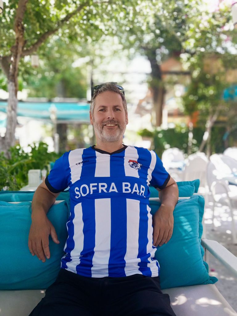 Although Lukka is certainly not for the cheap chasing crowd, I didn’t find the prices extortionate and the service is very nifty. I noticed on the receipt that Lukka quoted the price in lira, US dollars, Euros and UK pounds. They had the GBP price listed at £25.80 which meant that they were still using 50 lira to the £, but it was actually cheaper than that if paying in lira. While at Lukka we got chatting to Katrina and a couple of our neighbours, they were eating what looked like some rather tasty meals. Katrina let me try her Çökertme which was very good so we decided we would ask The Aussies if they fancied joining the Music Bingo night tomorrow and have dinner there. As luck would have it, they did and we booked the last 4 seats (it’s very popular with the tourists) and even pre-ordered the lamb’s leg for the men. We went back home for a dinner of halloumi salad, knowing tomorrow we would be giving the ball a good kick!