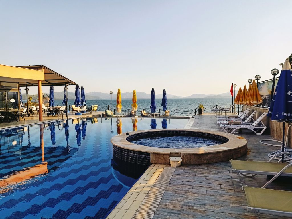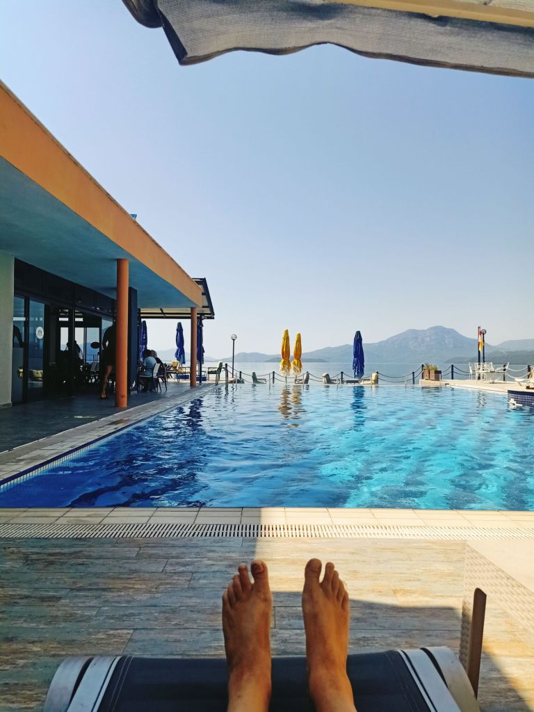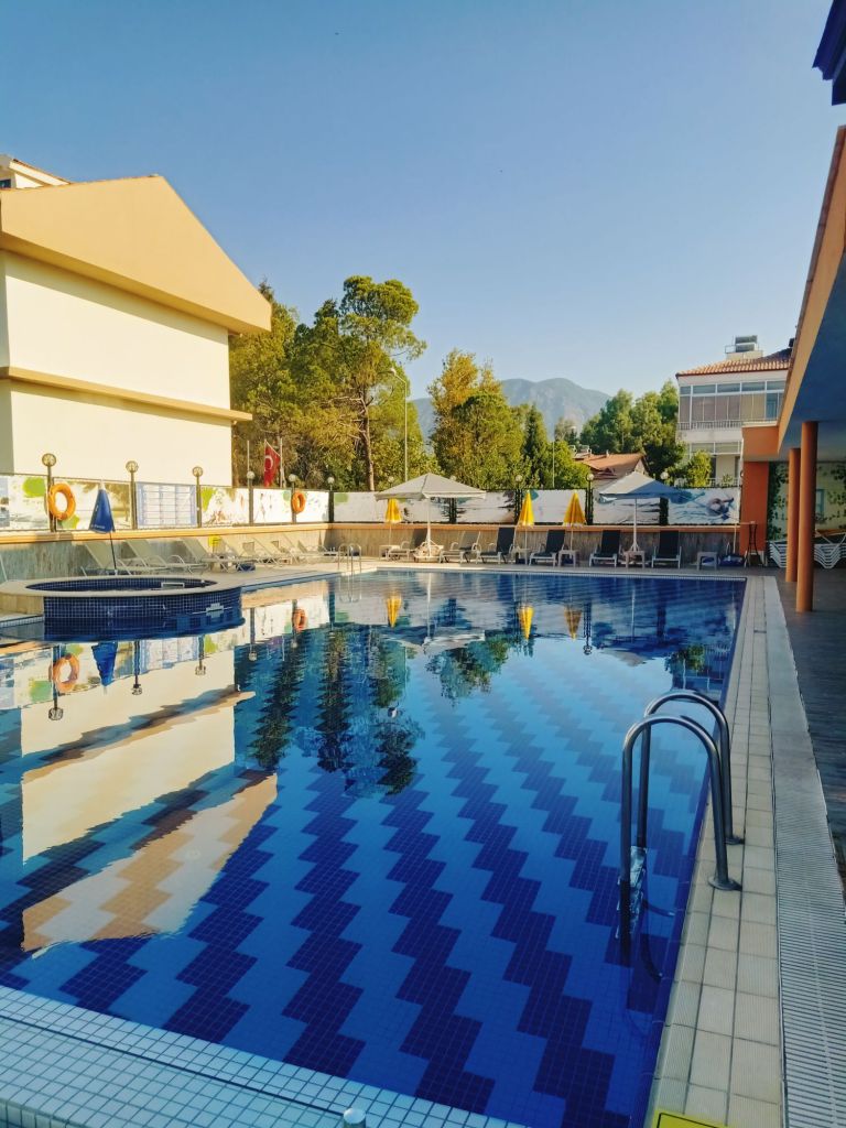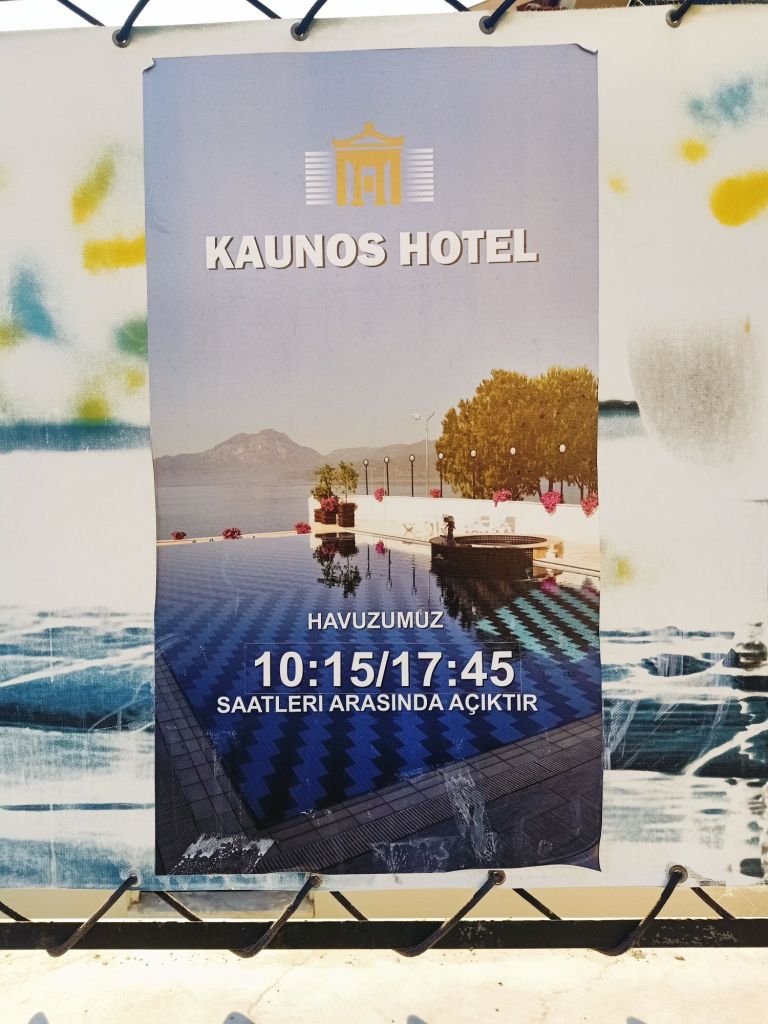 At breakfast Captain Caveman barely spoke and was blowing his nose quite a bit, I thought we would probably have to cancel today’s plans. The breakfast wasn’t bad and there was quite a selection but with Captain Caveman suffering man-flu it was a bit disappointing. We had arranged to meet Janet & Ian and Sezgin & Nur over in Köyceğiz but we hadn’t had a reply from Sezgin. I was happy to check out after breakfast and then wait until the pool opened, as I was determined to have a swim. I’d also wanted Captain Caveman to take some photos of me (or us) in the pool perhaps, but he wasn’t up for it.