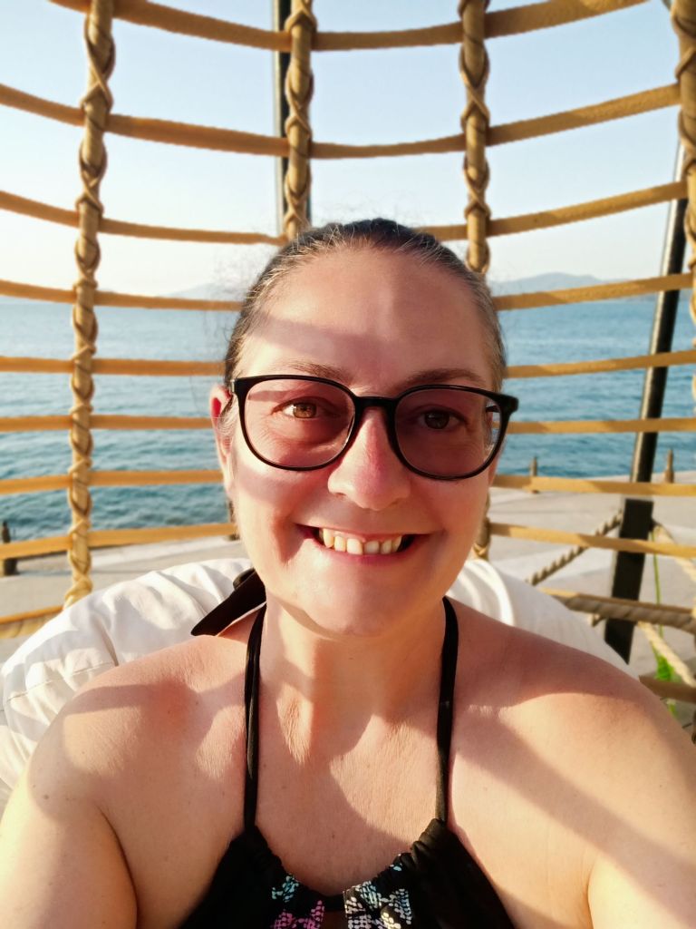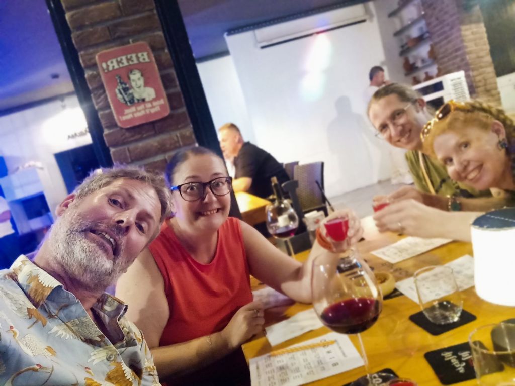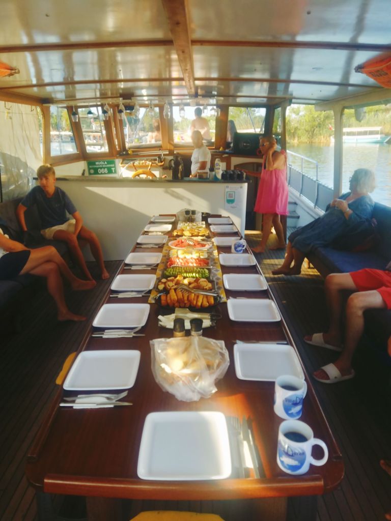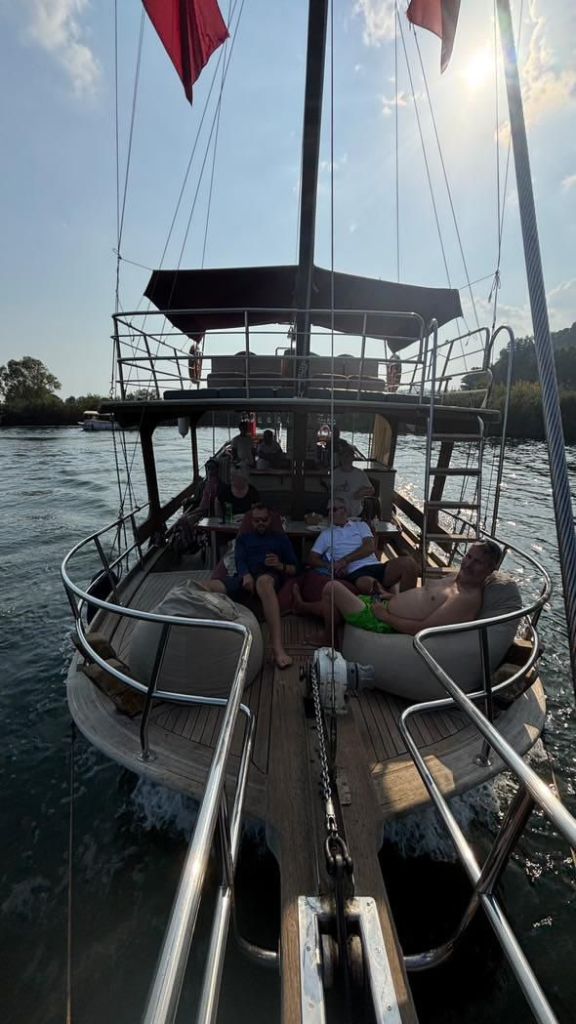 Captain Caveman and I were having breakfast at home on Saturday 6th September. He was contemplating going to the dog shelter to walk some dogs. I was going to do a few bits of content editing for next week, being back at work, so that my 2 weeks off went smoothly. I also had loads of stuff to share from this holiday, with Captain Caveman, and couldn’t wait to get it on my business page. Our friends Josh & Martha had arrived in Dalyan to join their family and they had booked the Princess of Ekincik boat for a private day trip, after I had recommended it. There had been a group chat to discuss requirements for the wheelchair user on board so I hoped it would be suitable and comfortable for all of them. For those who might need to know, a wheelchair up to 60cm wide will fit! Martha got in touch to say that her and Josh had been delayed on their flight, after another passenger had a medical emergency, so they were super tired. She wanted us to join the trip so that we could catch up and help keep everyone lively. I was on the strong medication and lidocaine based sprays, so I was away with the fairies and said yes. I hadn’t accounted for the fact that I needed to walk all the way to the boat which took me absolutely ages. When I got there, Ismail mentioned that they do have a mobility scooter that they can collect disabled guests on, should I have needed it. I got a hot drink and sat myself down with my leg propped up until the others arrived. When everyone got on board; Martha, her parents, brother and Josh, it was really nice to see them all and we got on great straight away. The wheelchair went on and off fine and was parked up so that Zac could see the amazing scenery as we sailed down the river to the sea. The crew, the boat, the food, the drinks and the company were absolutely perfect and to see Zac be able to enjoy a boat trip in Dalyan was just fantastic. We had a couple of swim spots and even a visit to the back of the beach, Little Dalyan, where I kept Martha’s mom company on the boat while the others went off for a bit of adventure. I even had a cherry juice in a wine glass so that Trish wouldn’t feel alone in her red wine enjoyment – it was a real pleasure to see her have a bit of time to herself and not worry about Zac, who was in very capable hands. When the family got back, they had enjoyed a jaunt over the beach to the sea and Captain Caveman didn’t fall for the joke of me having red wine in my glass – he knew I wouldn’t be drinking against Doctor’s orders. We then decided to go to the boat end of the beach so that we could see the tourist part and it was very busy. We saw turtles which was great as some of the guests on board hadn’t seen them before in Dalyan. We all enjoyed a really lovely lunch on board which, given that Captain Caveman and I had decided to join only this morning, was plentiful. After spending the rest of the afternoon on the boat and enjoying ice creams, then some cake with fruit, we returned to Dalyan at gone 5pm. I’m not mentioning any names but I think more than 1 of us had a power nap, as we were just so relaxed.