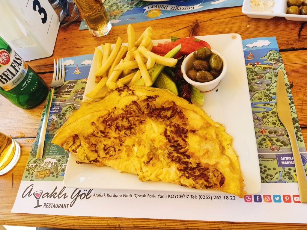 I rested up all afternoon while Captain Caveman sorted his packing and the moving of anything I might need/not around the house. We obviously didn’t need a lunch and I wasn’t mobile enough to do any cooking. Captain Caveman decided we should enjoy his last meal at Duble, another one of our favourite places to eat in Dalyan. Here’s what we had with prices in lira;