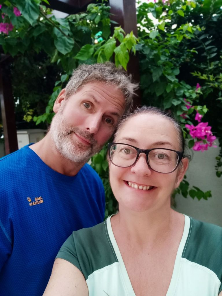 We decided on a more relaxed day in Dalyan on Wednesday 27th August. Captain Caveman had planned to help out with a bit of Dogging at the local dog shelter in the morning. It was going to be another hot one so I declined to join him and caught up on a bit of blogging, as I was quite behind on the editing. I had beans on toast for breakfast and Captain Caveman made himself an egg related concoction before I had even surfaced. As it was weigh day, I got on the home scales to find I had put on 0.25 kg (0.6lb), which wasn’t ideal but could’ve been worse. My measurements were not ideal either with a 1cm off my bust, my waist stayed the same and I’d put 1cm on my hips. In the afternoon our friends, Amanda & Greg (aka The Aussies) had arrived from Australia for 6 weeks, and had invited us over to their villa. As soon as Captain Caveman was back and cleaned up, we walked over to see them and we were met with a surprise. They had brought us gifts and the most thoughtful one was a T-shirt for me which was my ‘You Can’t Shit Yourself on a Bicycle’ book cover with a QR code on the sleeve, to scan to my blog! I nearly cried with happiness at how good it was! And it fit perfectly – how fantastic. We had a drink to celebrate but then I had to leave Captain Caveman and The Aussies to it for a bit. I stood in for Carol at Fat Club as she was away, her scales told me I had put 0.3kg (0.7lb)! We had a good chat at Fat Club but then I had to rush back to rejoin the welcome party. We had a few more drinks and then left to call at the supermarket opposite our friends’ house. Here’s what we bought with the prices in lira; Garlic 54.90 Halloumi cheese 76.90 Frozen fruit 164.90 Total spent 296.70 lira (£5.50)