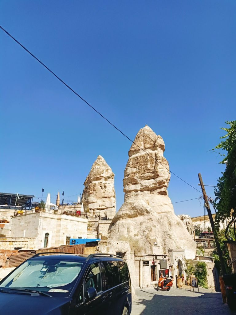 After unpacking and drinking all the water in the minibar we went off to find a tour company to book our Red & Green tours with. Originally, I’d asked a lovely guide called Ozzy but he was booked up already. It cost us €220 (£191) for each of those for both of us with Cappadocia Visitor. We also got a free bag from the guy in the office, which I was happy about. We went in to an off licence where we didn’t find any screw top wine so we just bought a big water for 25 lira (46p) and a big bag of crisps for 75 lira (£1.39), before making our way back to the hotel.