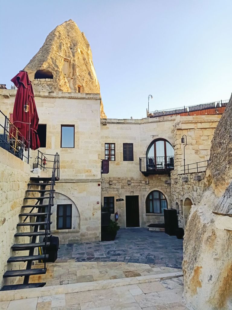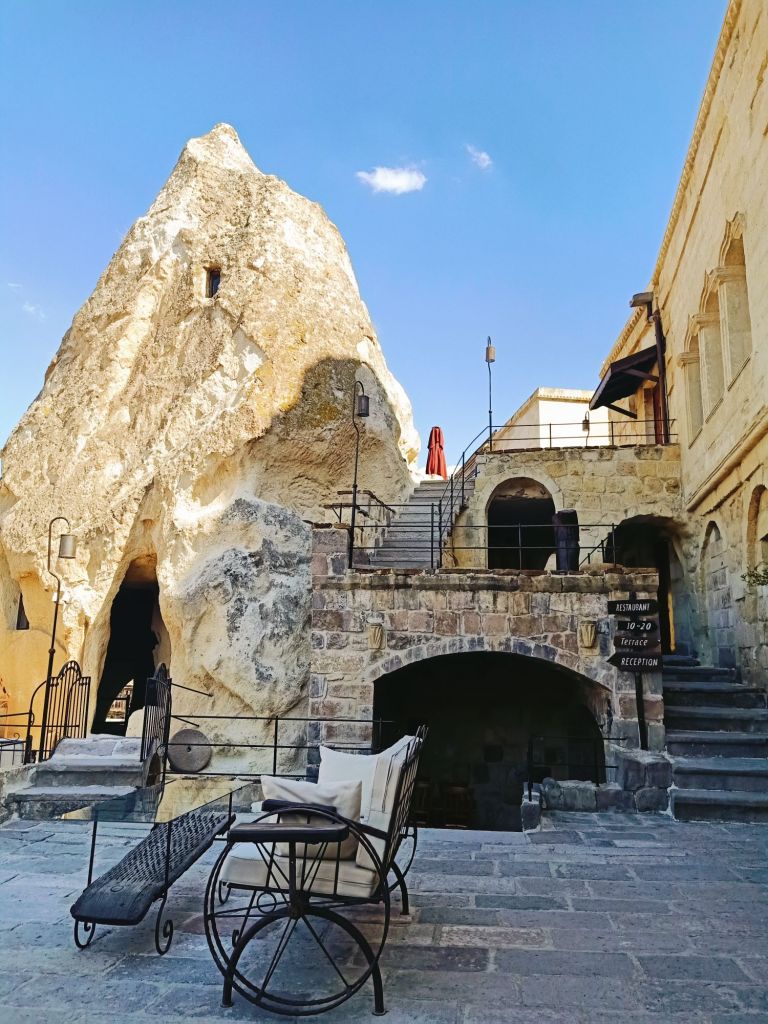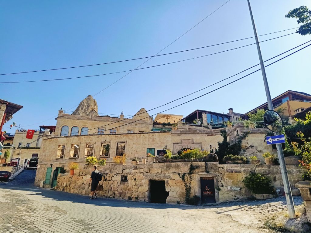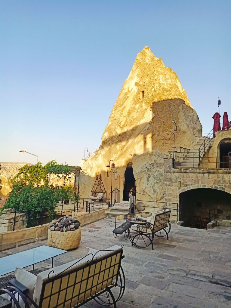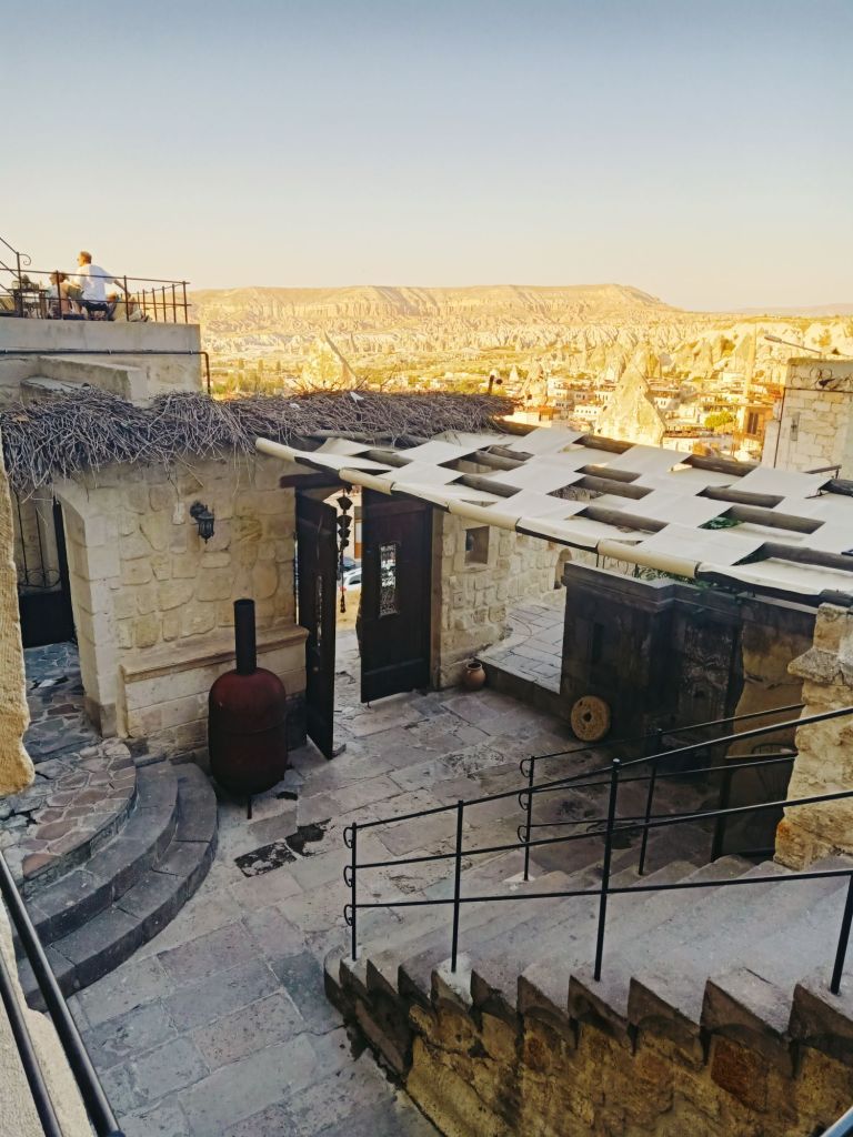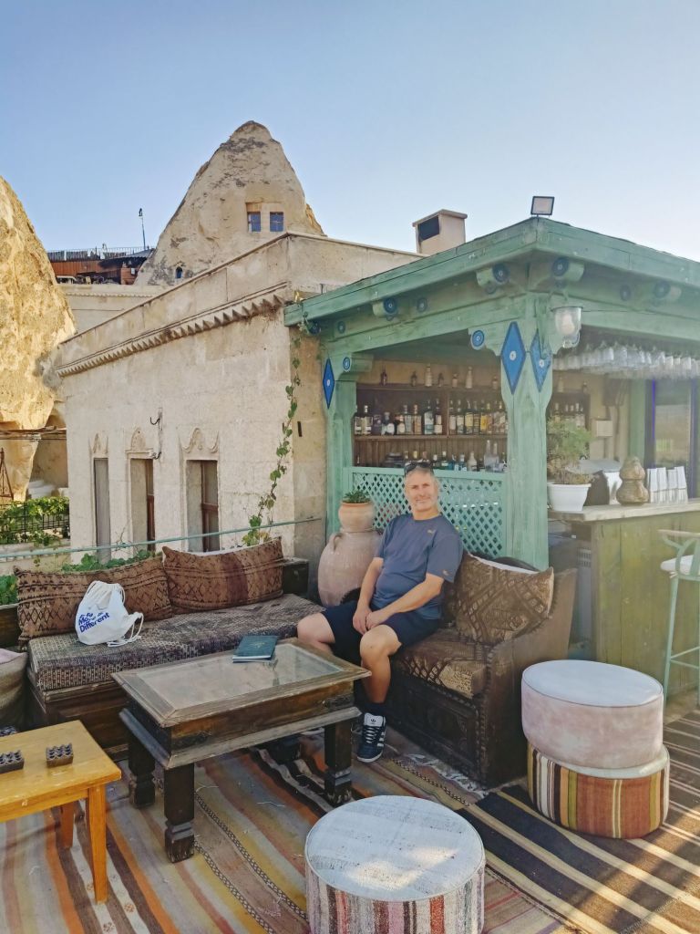 The Flixbus was good, it had a toilet on but we also stopped for a loo break. We arrived in Göreme, Cappadocia, a little early after a couple of tours round the bus station. There was a bit of a walk up the hills to our cave hotel and it was hot and sunny. This was Captain Caveman’s first time in Cappadocia and he already looked impressed as he sped off up the hills. I had to shout him to wait to take my heavy bag at one point. We were early for check-in by an hour at Mithra Cave hotel, but the room was ready. Our room had a round bed and was inside a cave suite, I thought we had booked a room with a view and that the hotel had a pool but their Website was a little misleading and neither were available.
