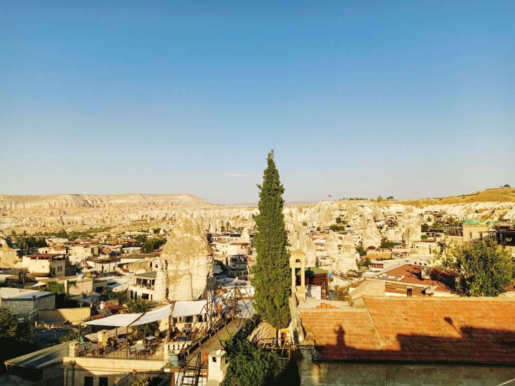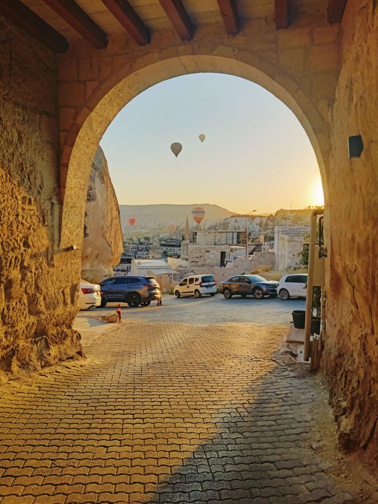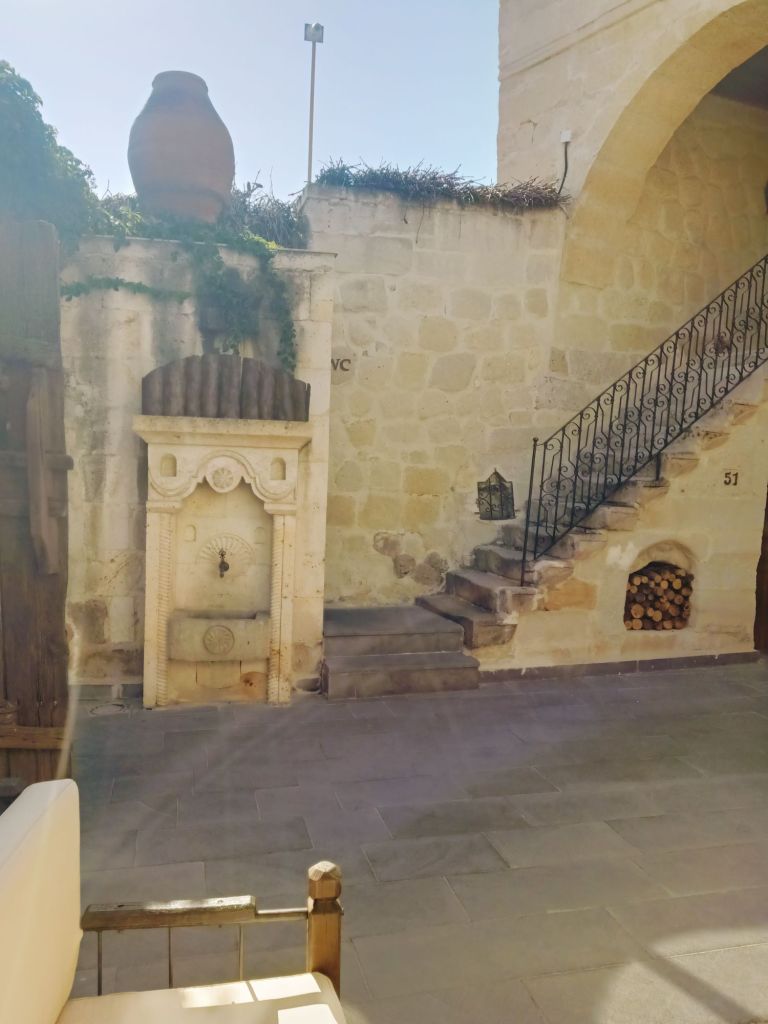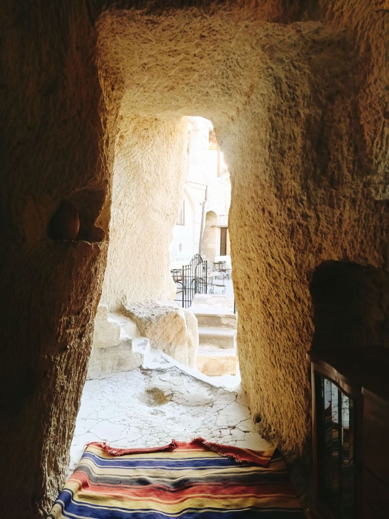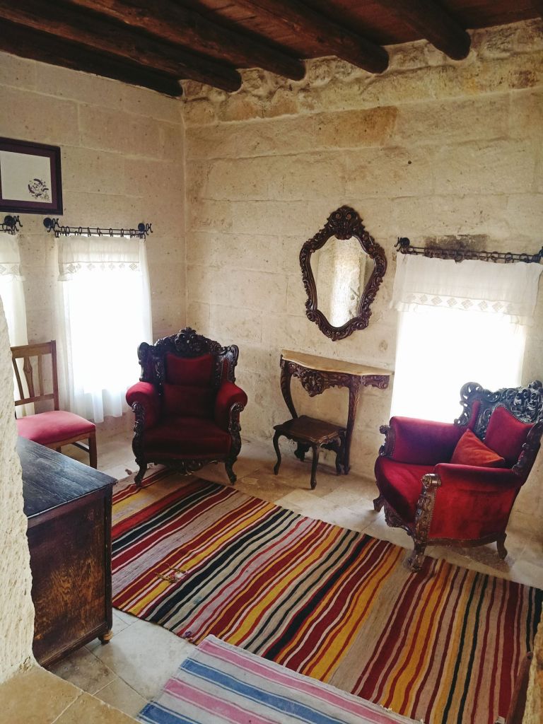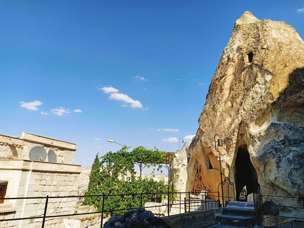 The Flixbus was good, it had a toilet on but we also stopped for a loo break. We arrived in Göreme, Cappadocia, a little early after a couple of tours round the bus station. There was a bit of a walk up the hills to our cave hotel and it was hot and sunny. This was Captain Caveman’s first time in Cappadocia and he already looked impressed as he sped off up the hills. I had to shout him to wait to take my heavy bag at one point. We were early for check-in by an hour at Mithra Cave hotel, but the room was ready. Our room had a round bed and was inside a cave suite, I thought we had booked a room with a view and that the hotel had a pool but their Website was a little misleading and neither were available.