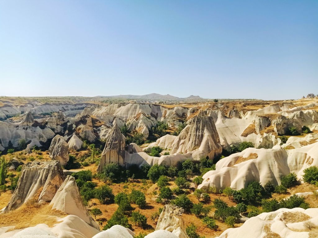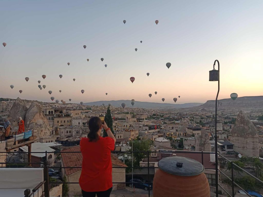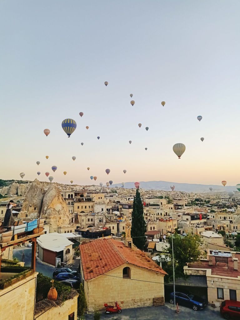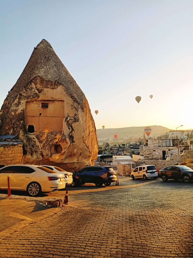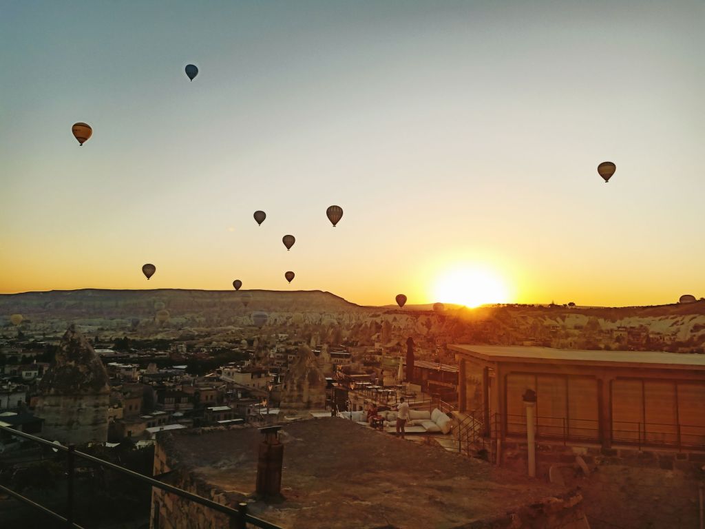On Monday 1st September Captain Caveman and I started our month and day watching the hot air balloons at sunrise from the terrace of Mithra Cave Hotel in Göreme, Cappadocia – how romantic. It’s a very strange sensation and is eerily quiet aside from the sounds of the flames roaring in the balloons, which are very close. We were out for 90 minutes before the sun finally got over the mountain at 6.30am and then Captain Caveman went off to explore and I lost him before breakfast. He went on to a building site while I followed some wood pigeons down a hill.