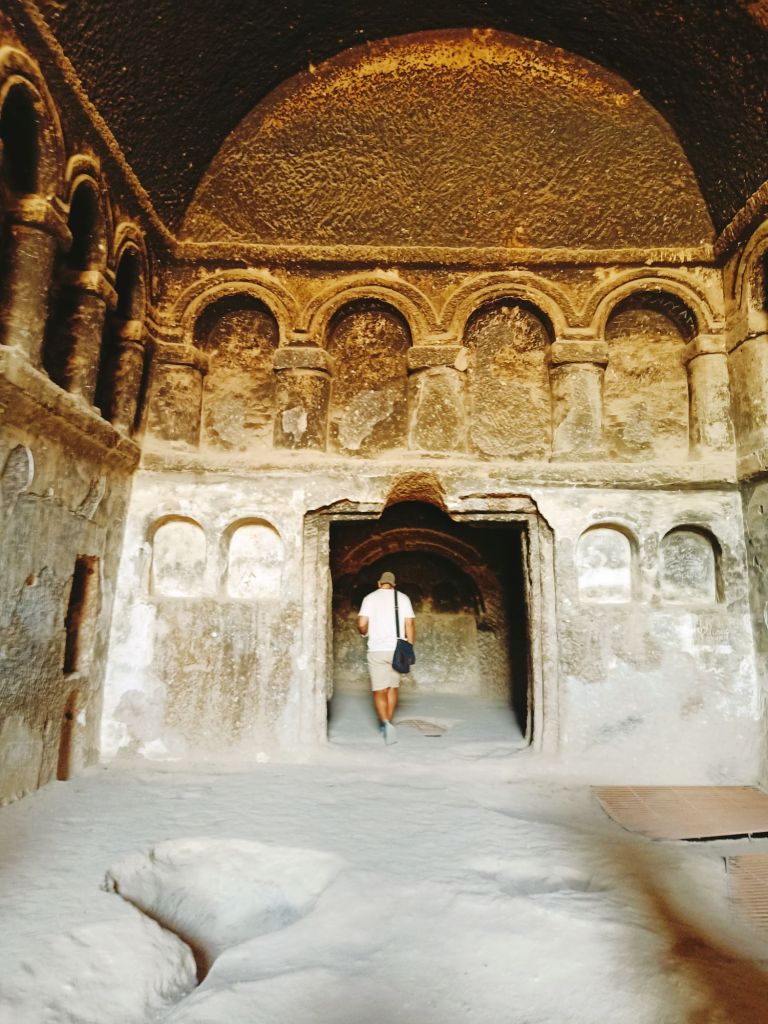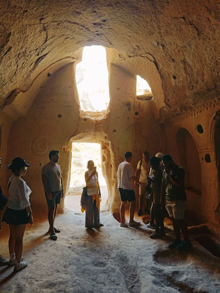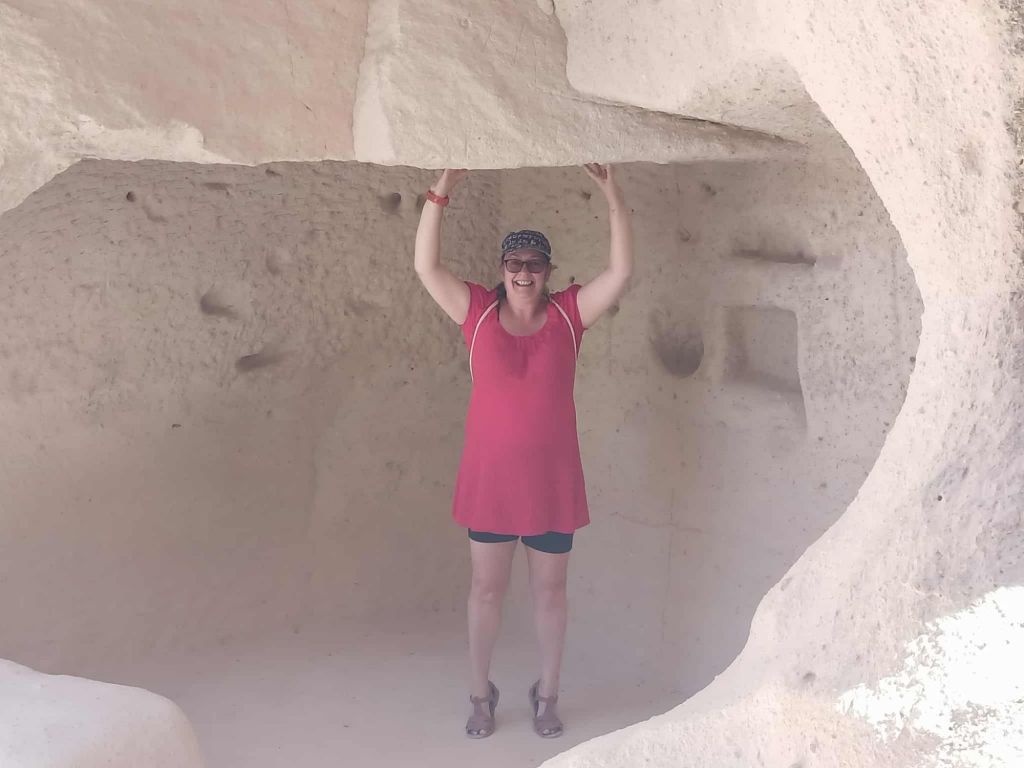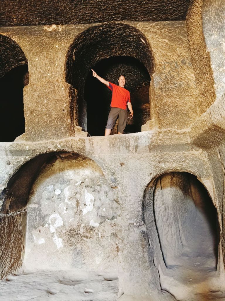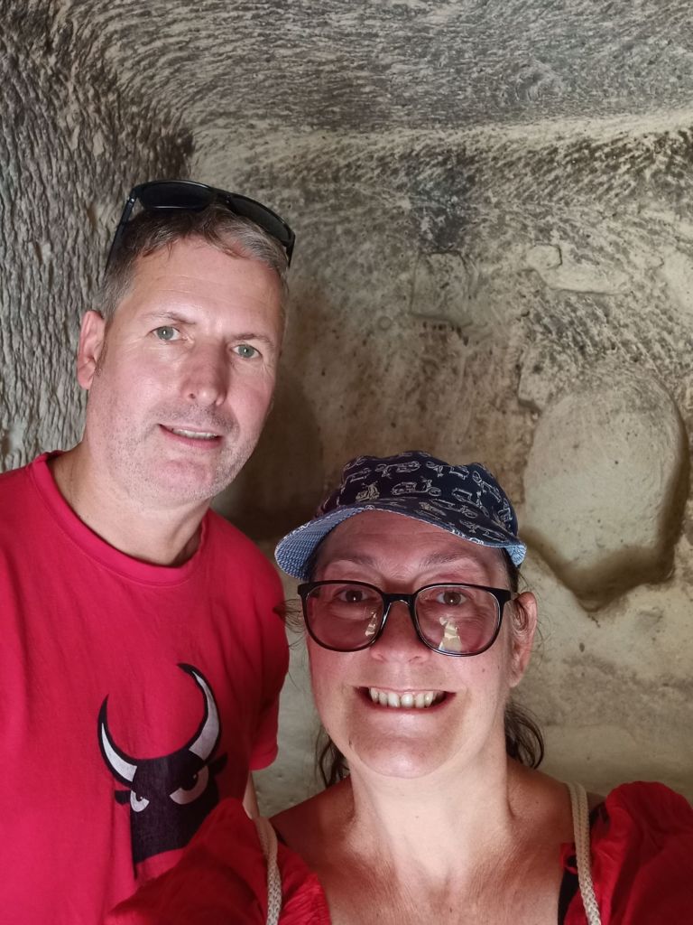 Captain Caveman got up early to watch the Balloons again on Tuesday 2nd September but I stayed in bed until almost 7am! Breakfast was good and quieter at the hotel so we sat inside – away from the wasps. Our Green tour started by 9.15am and included Pigeon Valley, Selime and the Kaymaklı Underground City, which Captain Caveman had been excited about seeing. I last went there with The Aussies but had freaked out so didn’t complete it. There was lots of history in today’s tour, a lovely lunch and, although I had been before, it was still interesting. We also went on a nice walk down to a valley where the riverside cafes were no longer there – it was not for the faint-hearted in the heat though and, obviously, I was the slowest in the group. When we got to the underground cave, I couldn’t bring myself to go in and I had to turn back, along with another tourist who had pushed lots of people (including children) out of the way to get out.