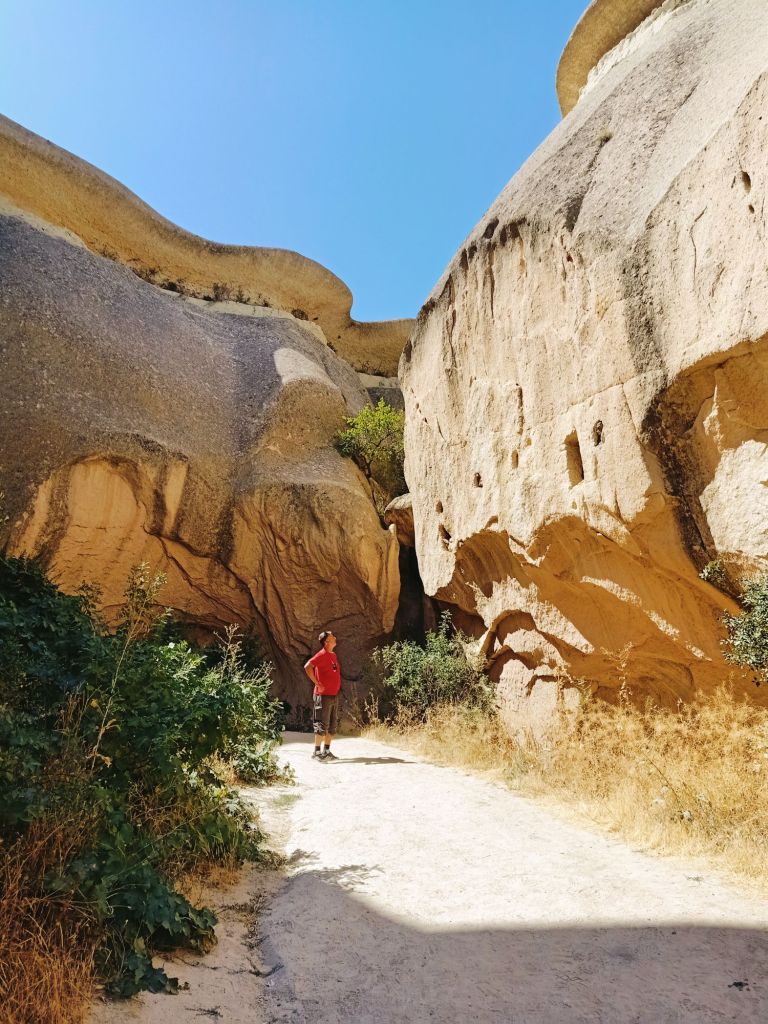 For those of you who are able, I recommend you visit it yourself, we visited the following sites; Zelve, Paşabag, Avanos, Dervent (Imagination) Valley, Uçhisar Castle, and Love Valley – most of it was rocky, hilly and very sunny so it was quite hot for me but Captain Caveman was so happy. The trip included lunch which was a soup, a kebab with mezes and was pretty good to say we were on an organised trip. The water was also included. We didn’t have to pay anything extra to the 100 Euros we had paid for the trip and we met some nice people, including our guide, Mr H. I wasn’t sure how Captain Caveman would adapt to being a customer on a tour, rather than the leader, but he enjoyed it and we both had very dirty feet and legs when we got back to the hotel.