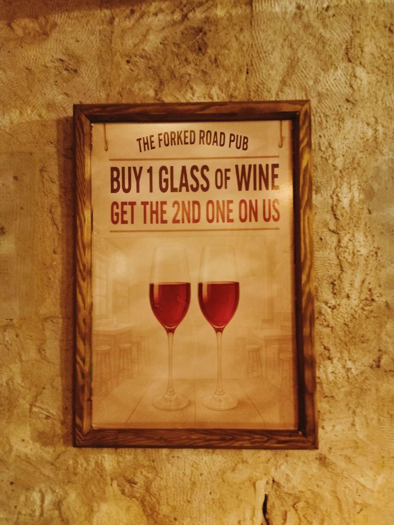 In the evening, we decided to try out the ‘Buy one get one free’ wine at the Forked Road pub. We sat on the roof terrace and ended up having 4 glasses of decent wine and a bottle of water for 1,134 lira (£21).