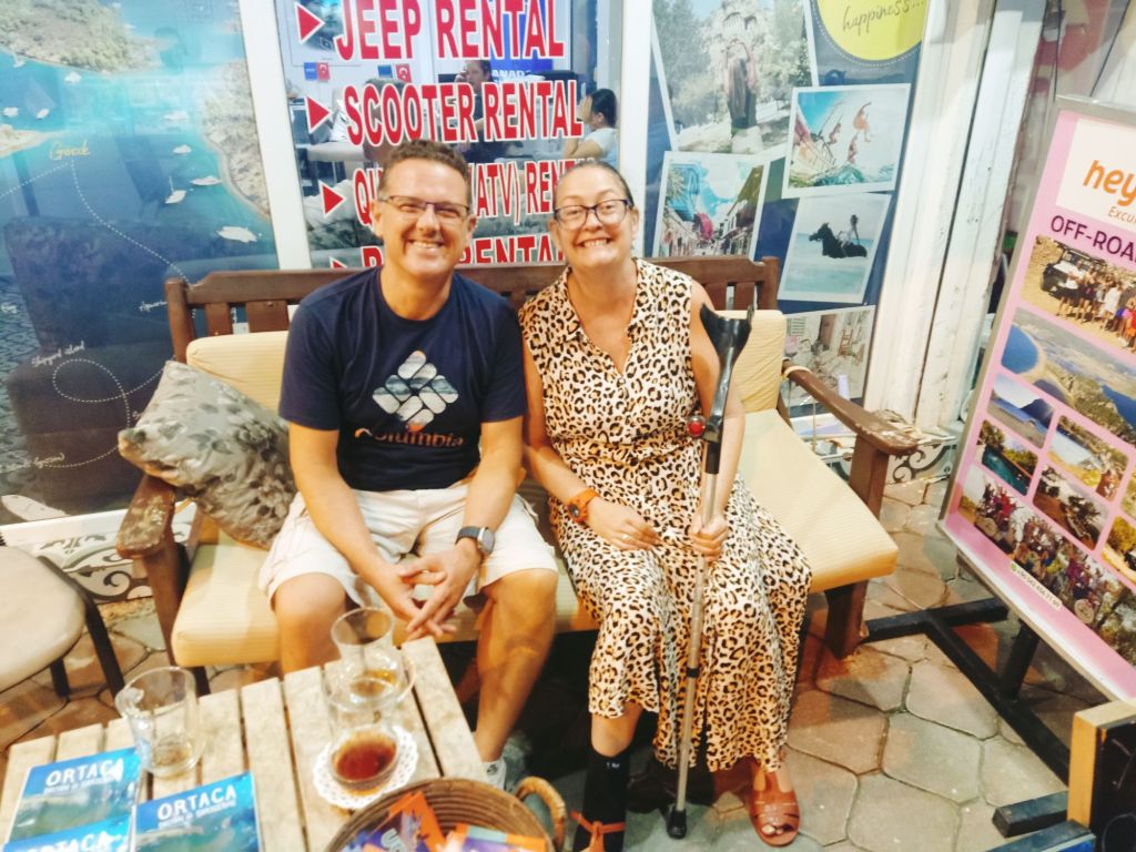 The food was lovely and a generous portion size – I’d somehow forgotten to eat sensibly this holiday! I went back home for a rest and to put my leg up, the medicine can’t be taken with alcohol and I hadn’t known this so I would have to start the pills tomorrow as I had already consumed 2 halves of draft lager with a bit of lemonade. We had no food in at home, on account of us coming home earlier, so for dinner we went out again. It took me far too long to hobble along to Ayaz, a fairly new local eatery. It was quite late so the staff were very apologetic to have run out of all lamb dishes. I had a chicken shish and Captain Caveman went for a chicken iskender. I had a fresh pomegranate juice and the whole meal was amazing at a great price, even though I forgot to note the prices. On the way home, I bumped in to Aytaç Burçak Saraymine, my insurance broker. He wanted to check how I was and also how the service had been with the insurer. I knew the insurer would only pay up to 80% of any outpatient costs and I was happy with that. Aytaç invited me and Captain Caveman for a cup of Turkish tea with him and we sat and had a chat. I had been so happy that I had taken out the insurance with him. Lots of people (obviously, not experts) had told me that the cheaper insurance for residency wasn’t worth having but I certainly disagreed with that. My injury could’ve been a lot worse and cost me quite a bit just for not noticing a really small step!We stayed out until 11pm and I needed to rest my foot when I got home. The sprays were really helping and tomorrow I could start the stronger painkillers.