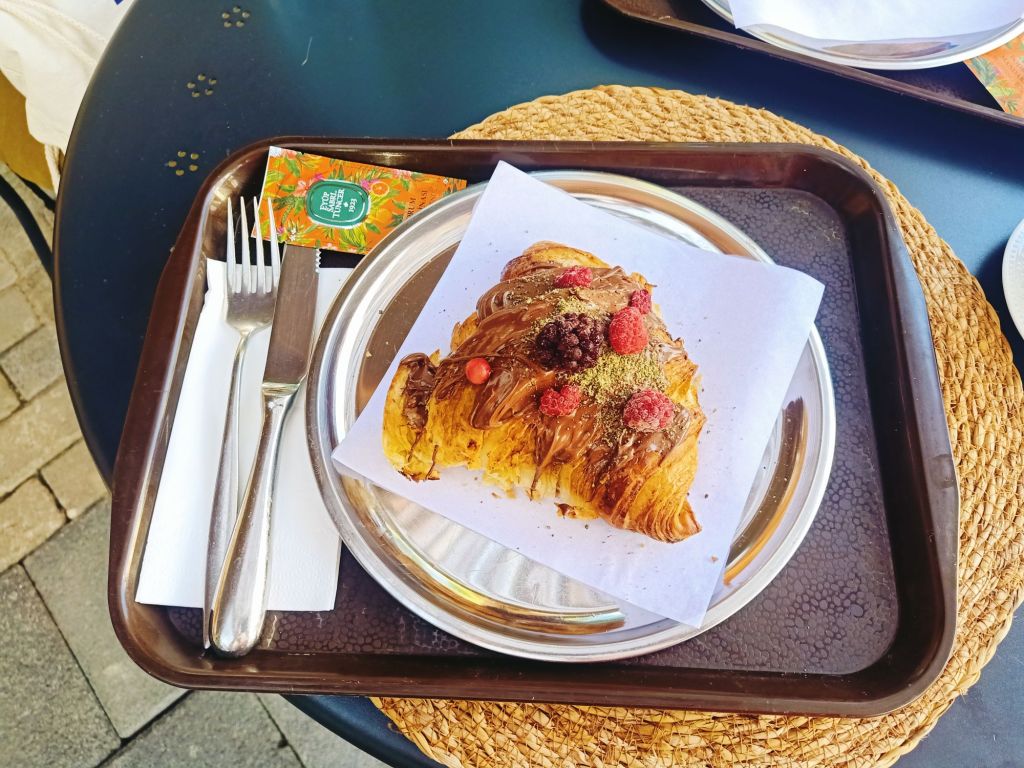 Captain Caveman decided to treat me to breakfast at La Sorella on Friday 5th September. We ordered; 1 water 1 Espresso 1 Green tea 1 Croissant 1 Croissant with banana, berries & chocolate
