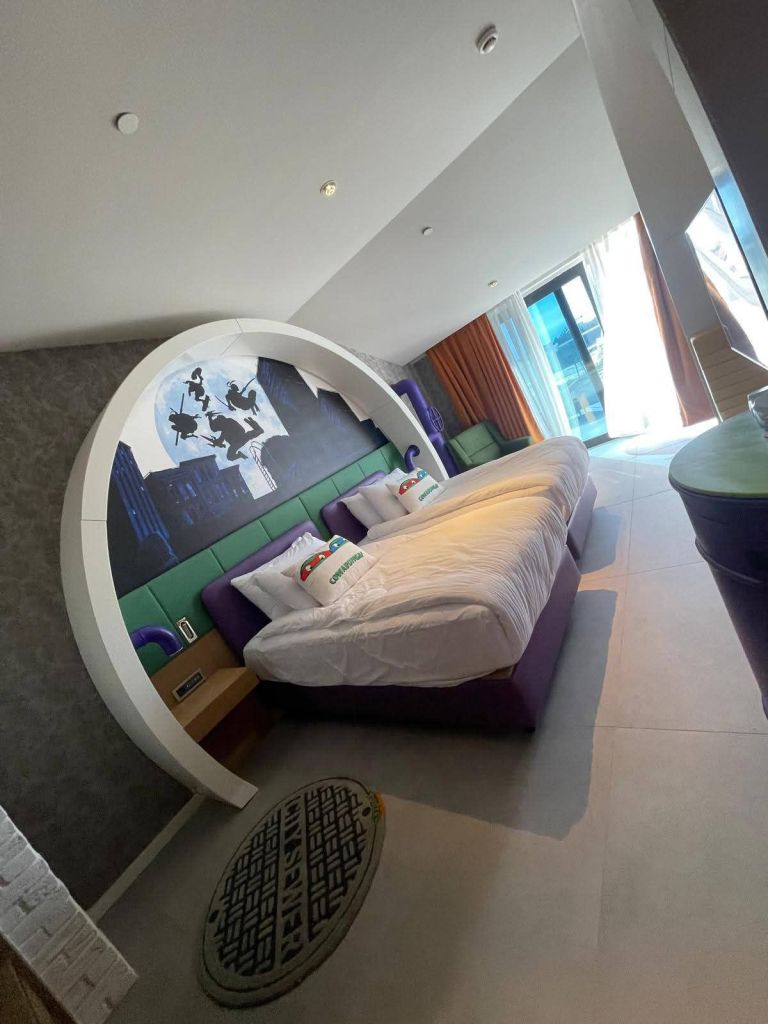 We visited the hotel bedrooms, which were amazing and we even saw the dining places which were not just tailored for children. The Nickelodeon hotel, again 5 Star, was very impressive too and as I waited for the lift I asked a couple of children what they thought of it. They never wanted to leave and looked to be having an amazing time. There was a sweetie area where anyone could help themselves to a few treats – a great idea. Both the hotels had comfy beds, great themed rooms and gave free access to the Land of Legends Theme park where all the rides and swimming pools are located.