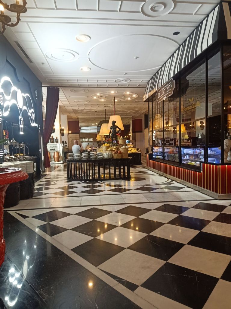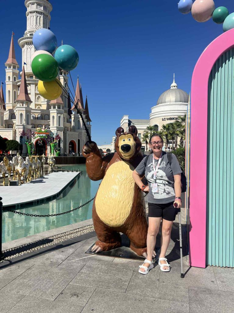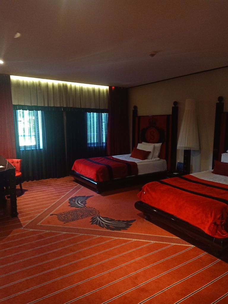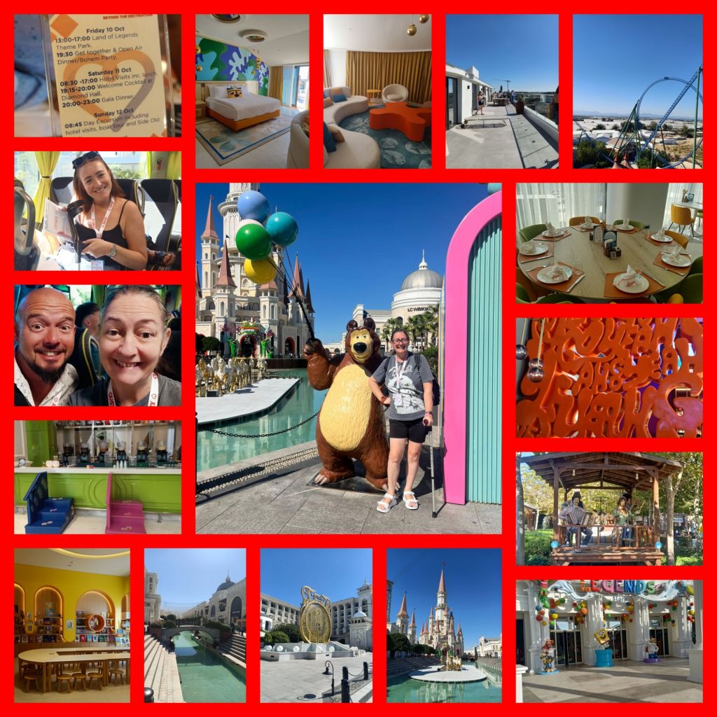 When Debby woke up I introduced myself and I felt like I was very lucky to have a nice room mate. We got on the bus to go to our first hotel inspections of the trip. This afternoon we were visiting the Land of Legends hotels and the theme park. We got split in to 2 bus loads and we looked at the hotels. Our group started with the Land of Legends Kingdom hotel which is 5 Star and absolutely fantastic for families. Of course Jamie had to test out the kids club facilities just to make sure it was up to scratch and I decided I would do the bed and bathroom testing. As I was crutching about I found it tricky to make notes but a couple of the other travel agents offered to help me get about and share their notes.