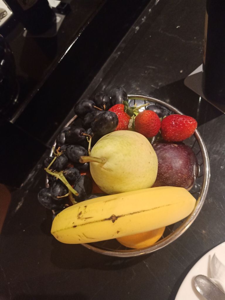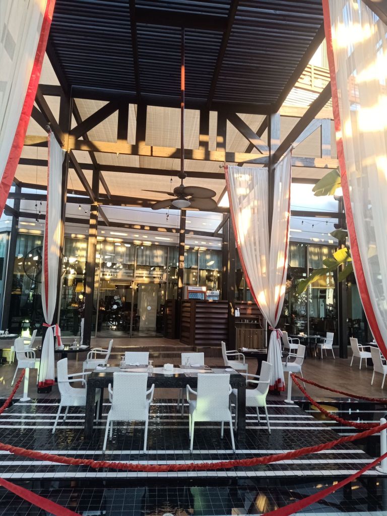 Dancers, saxophonists, fire and light shows followed but I didn’t miss my dessert. It was a really lovely pud but I was the only one who had one as the others had gone off to the bar and to watch the evening entertainment.
