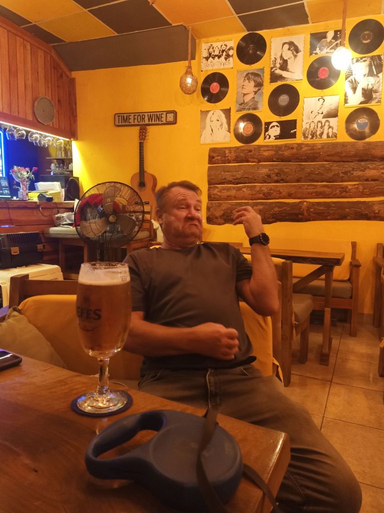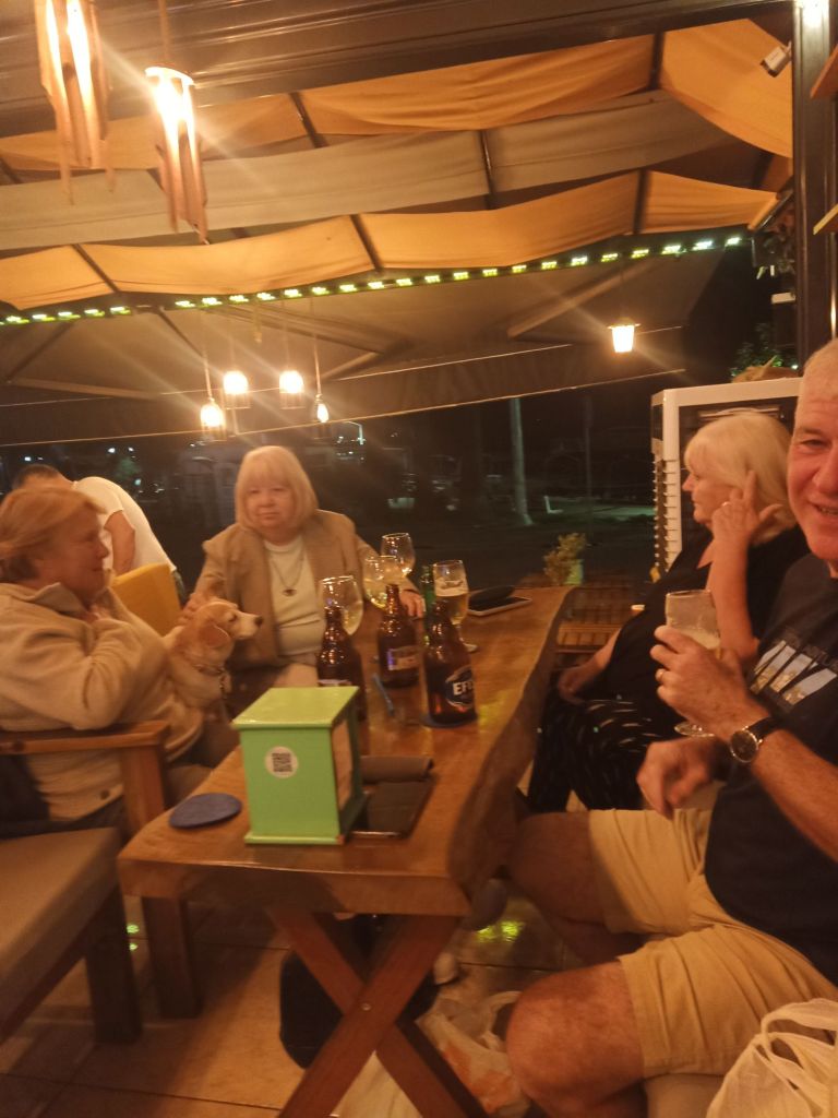 Norman and I had a little walk and bumped into my parents to say farewell and wish them a nice break at Jiva Beach in Fethiye. We then wandered past Phil who was walking Caramel and he’d left Penny in Tez bar. I decided to go in to say hello and had a glass of red wine while Norman got some fuss. He enjoyed listening to the regulars singing and even got a dog treat from Penny.