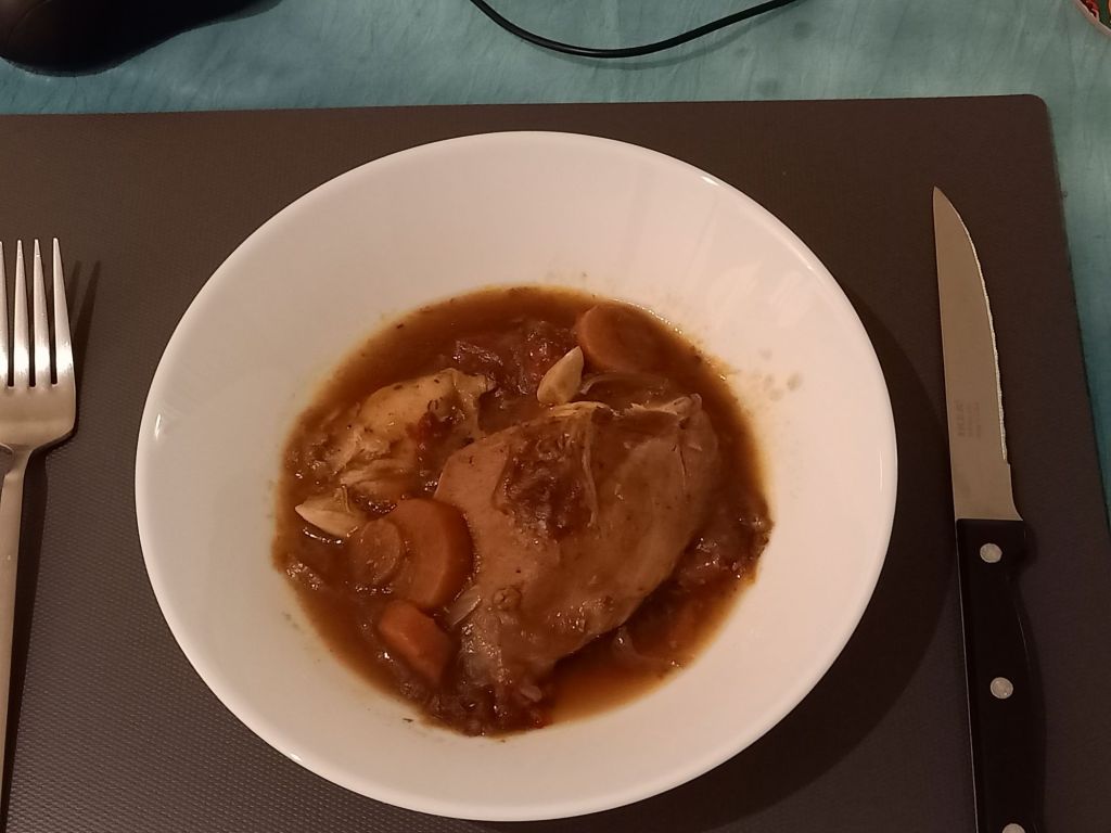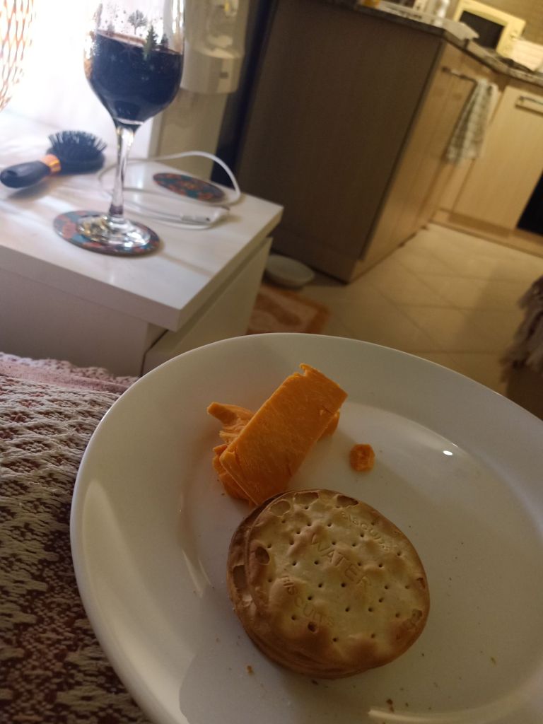 Back home I had a video call with Captain Caveman who was working in Scotland and was in a hotel. I had a very late dinner of chicken casserole then some cheese and wine as a weigh day treat.