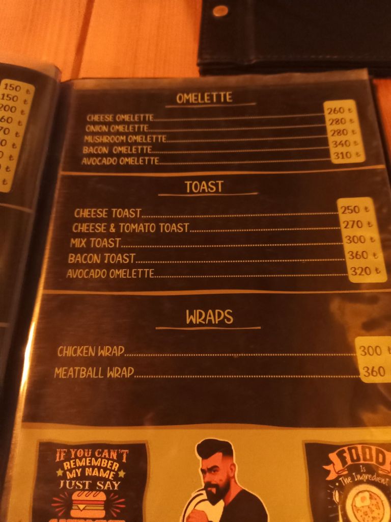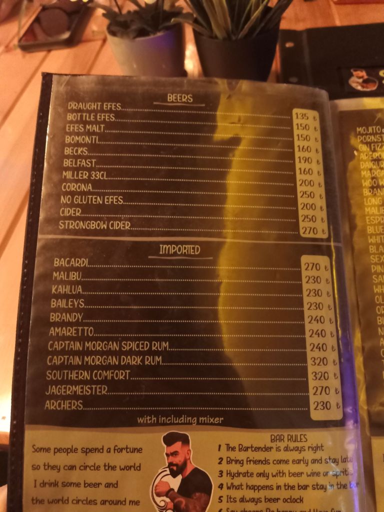 By mid morning, I had 2 mock up copies of my book cover, designed by Nicole, and I was very pleased with them. I had a choice of 2 and could get some tweaks so I did that quite decisively. At midday, I needed a break so I walked in to town. This was the furthest I’d walked without a crutch since breaking my foot, just over 2 months ago. I was still very slow and it frustrated me. I called at the shop but they didn’t have what I needed in, here’s what I bought with prices in lira;