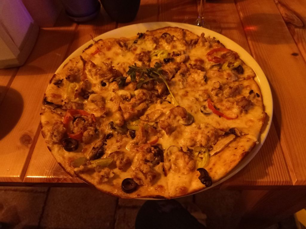 Vanessa had a plain jacket potato but I had a chicken pizza which is my favourite. I paid 705 lira (£12.82) for 2 wines and the pizza which included the winter discount. We had to get back to Kate’s cats for feeding time so we decided to get a taxi. Fikri charged just 200 lira (£3.64) for the journey and the cats were waiting for us. It was chaos and there was also a 3-legged cat who was on a beanbag under some chairs that had blown over in the wind. I gave it some food, it let me stroke it and was very vocal, so I thought it was injured. When I let Kate know she had an extra cat, she said it was Norman, Sue & Graham’s cat. I left it outside but it wasn’t being friendly towards some of Kate’s cats.