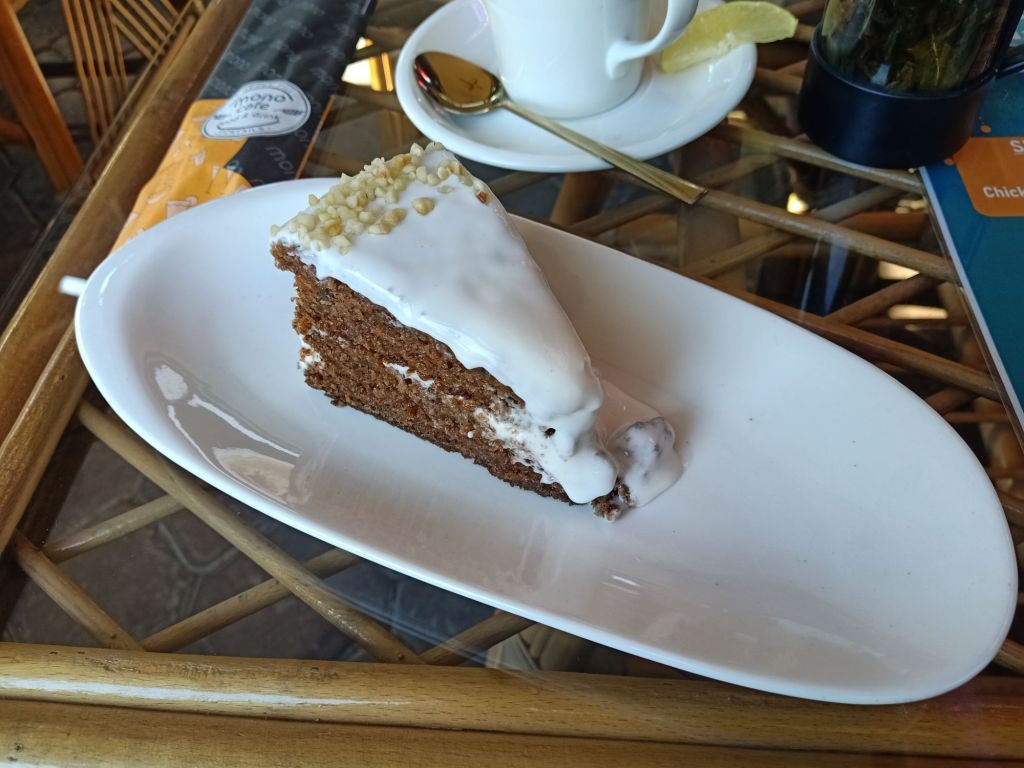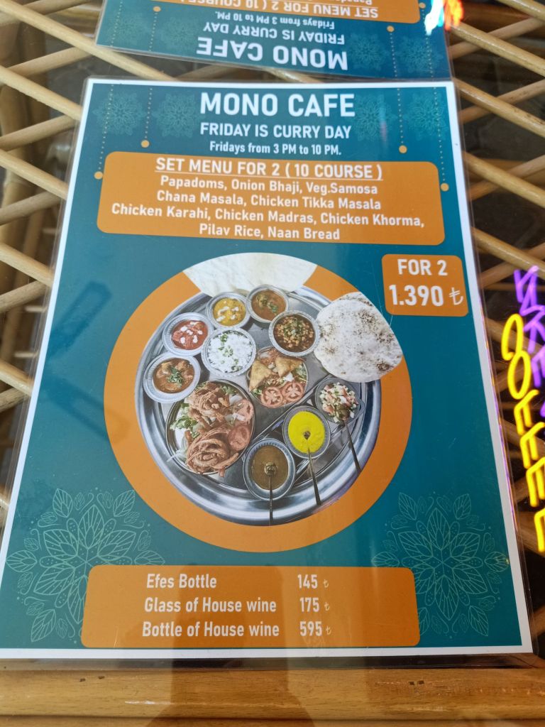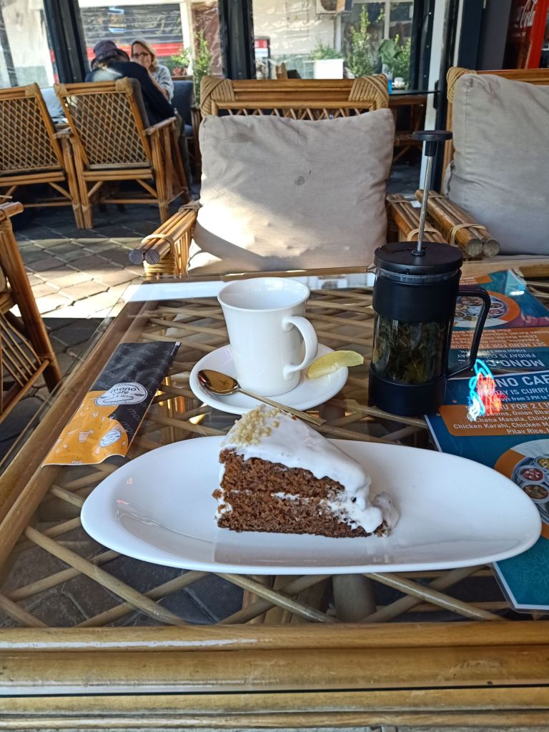 I called in to Mono where I ordered a green tea for 60 lira (£1.09) and sat relaxing and updating my diary. They had a new promotion on for Friday night Indian food with a set menu at 1,390 lira (£25.27) for 2 people, not including drinks. I got chatting with the owners and accidentally found myself with a large portion of delicious carrot cake for 295 lira (£5.36). It was probably the most expensive piece of cake I’d eaten in quite a while but it was very good and I didn’t manage to save half, as intended. I walked back to Kate’s, a bit cheesed off at having forgotten the key but pleased I’d had a day out, even if I had unexpectedly spent over £20. Back at Kate’s I fed all but 1 of the cats who didn’t turn up that evening.