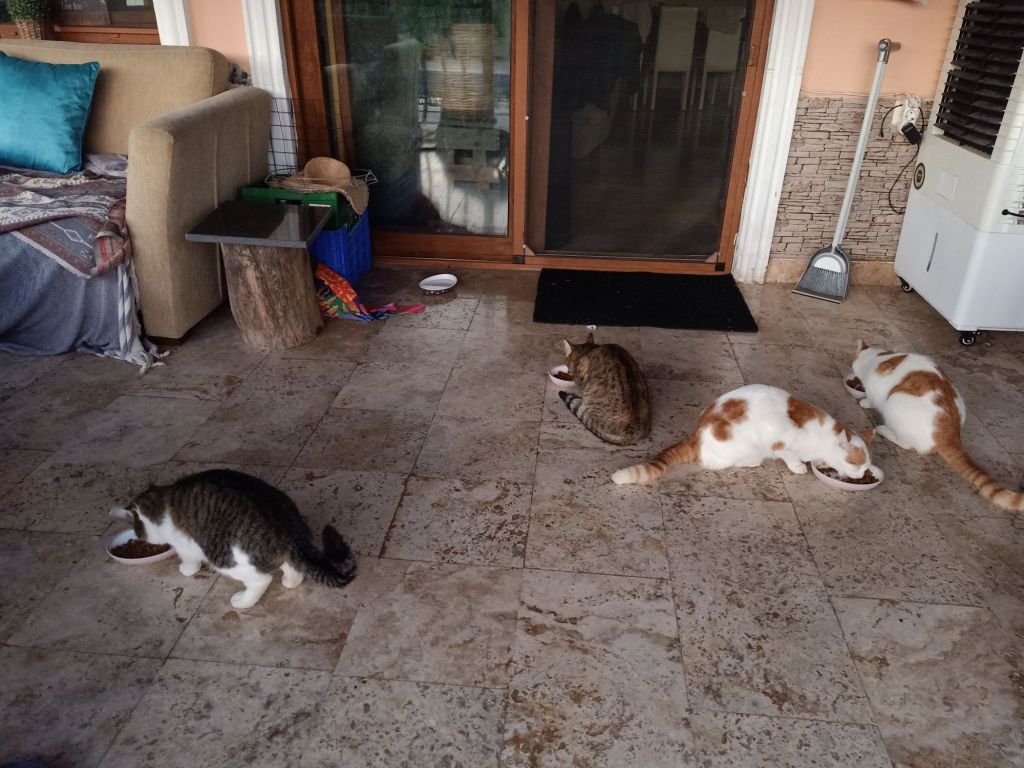 I got a message from my Mom to say the return bus from Jiva Beach had been moved, so they would be home even earlier. I’d packed up my stuff, washed the cat’s bowls and made sure everything was tidy, ready for Mark and Kate’s return. Casha was reluctant to go outside but all the others were up for playing in the sunshine.